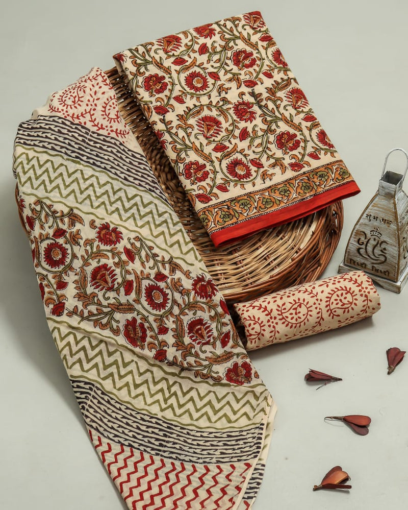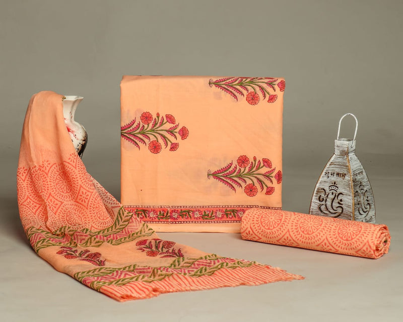 Designer Hand Block Print Pure Cotton Suit with Cotton Mulmul Dupatta (MALYS17)