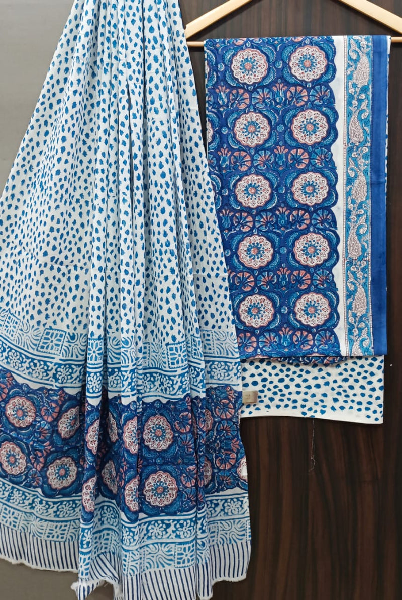 Designer Hand Block Print Pure Cotton Suit with Cotton Mulmul Dupatta (MALYS21)