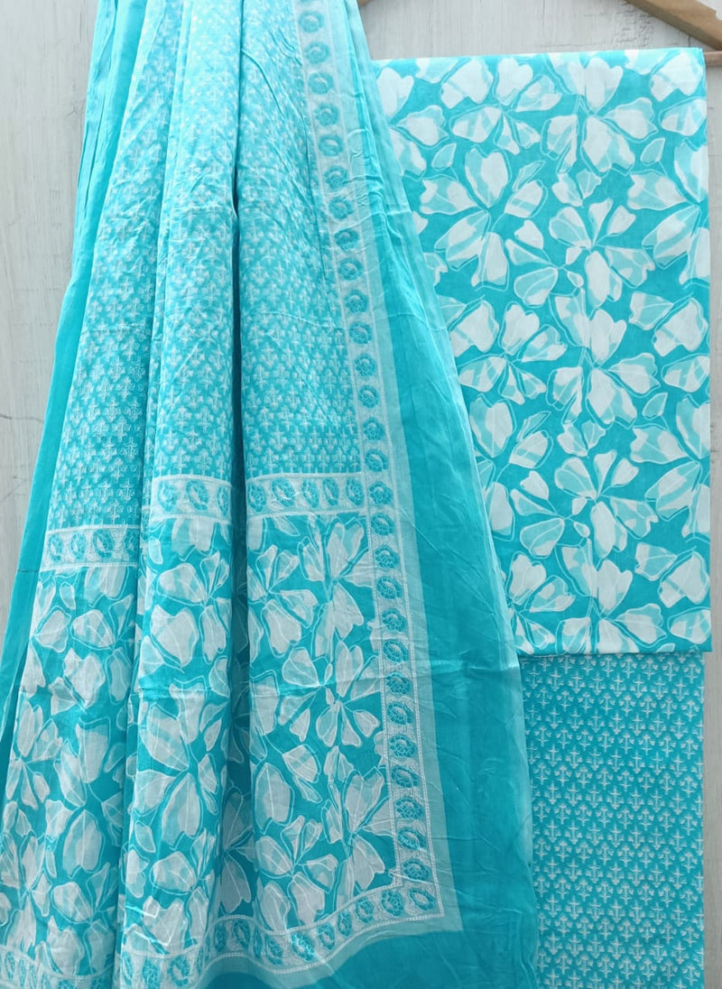 Designer Hand Block Print Pure Cotton Suit with Cotton Mulmul Dupatta (MALYS02)