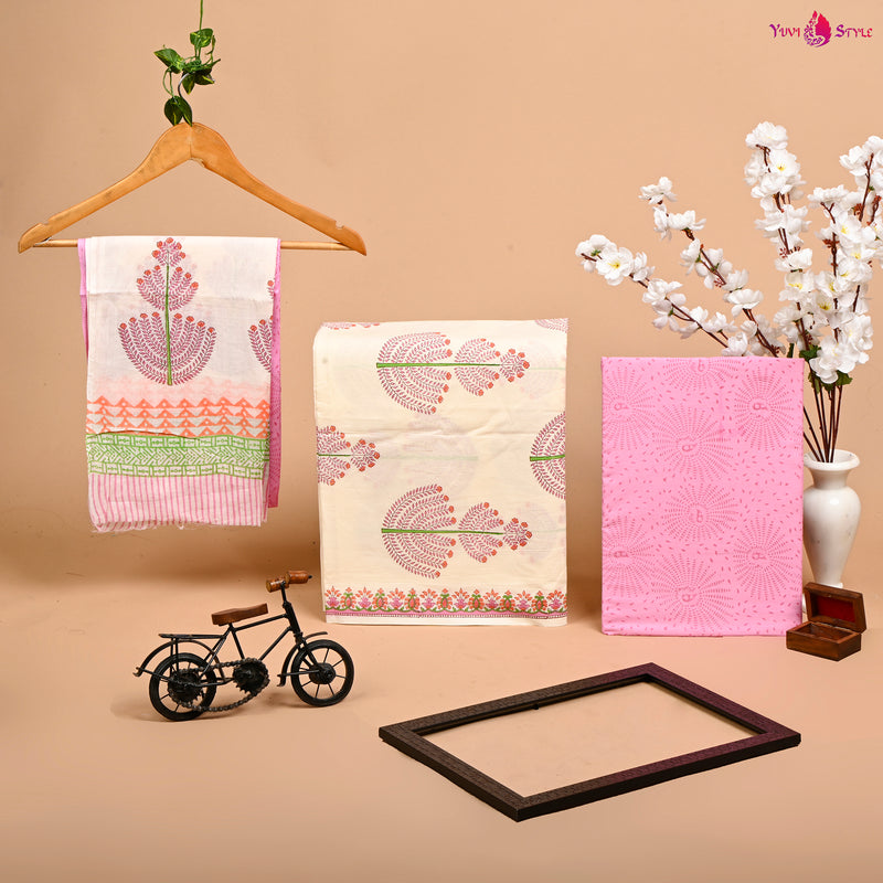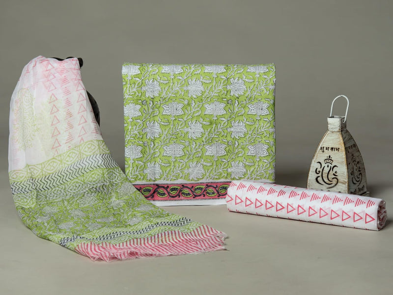 DESIGNER HAND BLOCK PRINT PURE COTTON SUIT WITH CHIFFON DUPATTA (PCHFYS62)