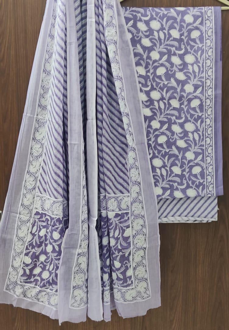 DESIGNER HAND BLOCK PRINT PURE COTTON SUIT WITH COTTON MULMUL DUPATTA (MALYS23)