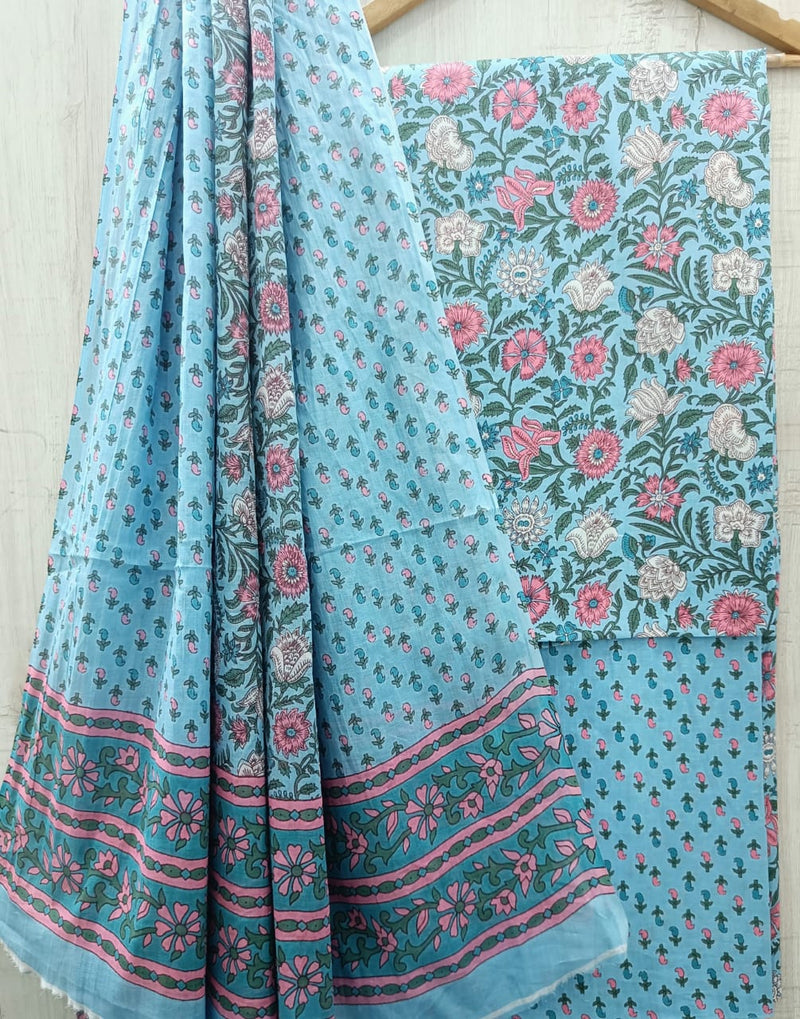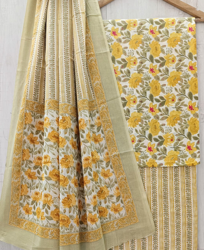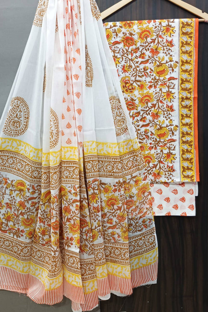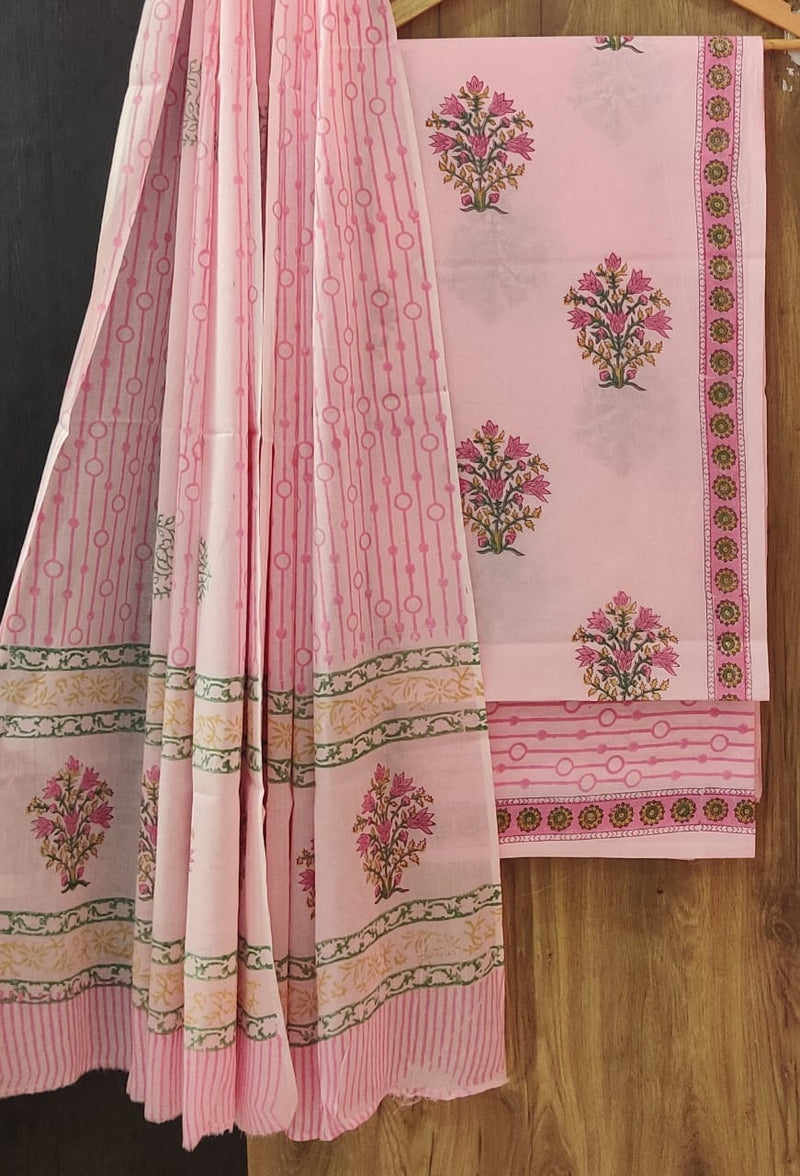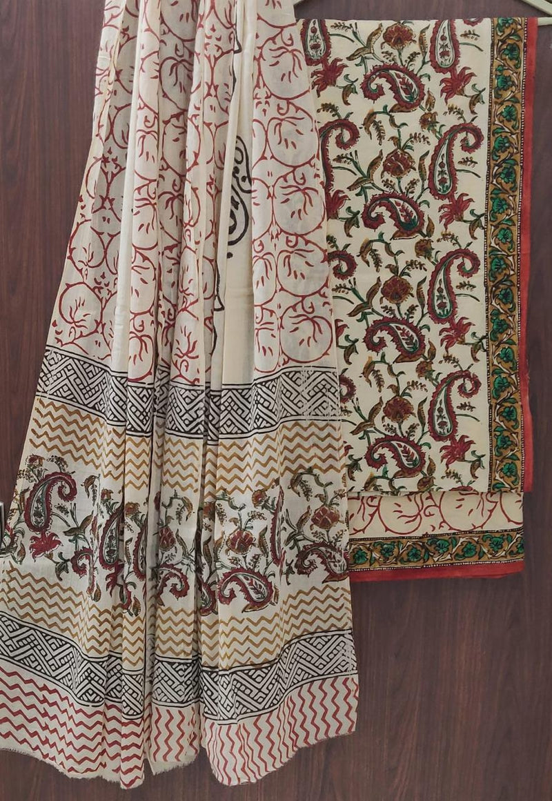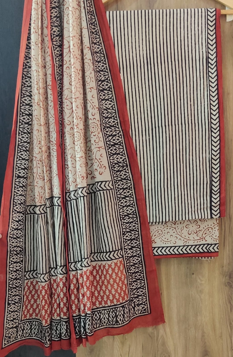 DESIGNER HAND BLOCK PRINT PURE COTTON SUIT WITH COTTON MULMUL DUPATTA (MALYS63)