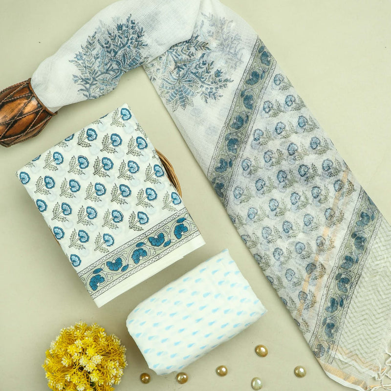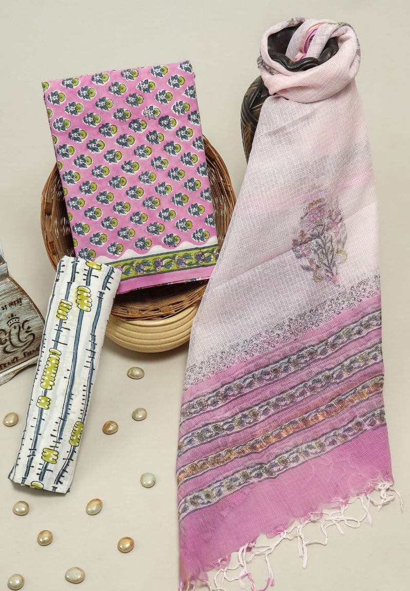 DESIGNER HAND BLOCK PRINT PURE COTTON SUIT WITH KOTA DORIA DUPATTA (3CKDYS103)