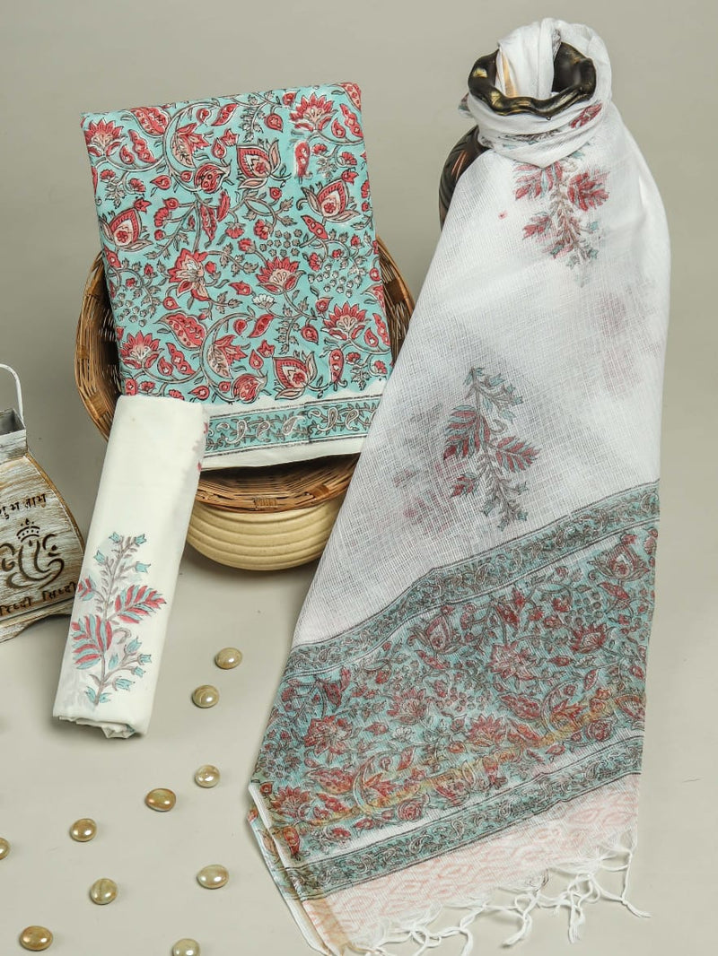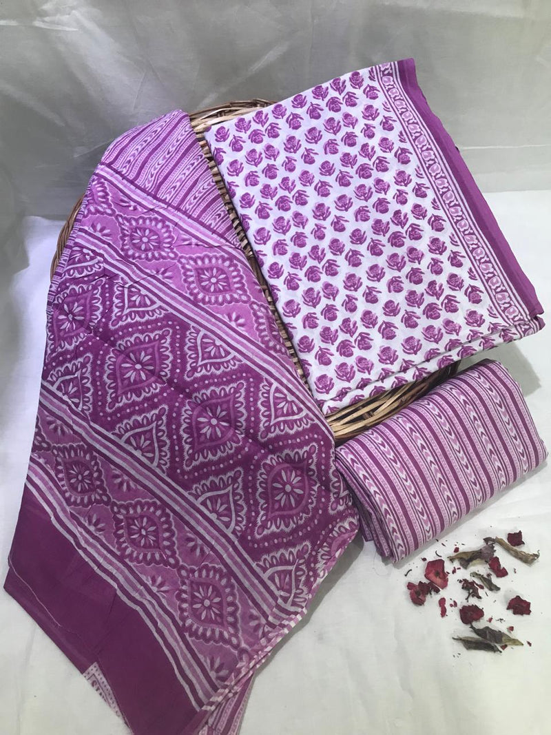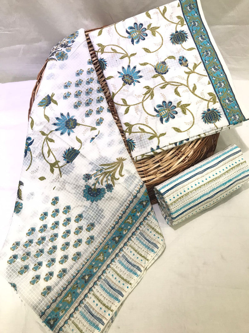 DESIGNER HAND BLOCK PRINT PURE COTTON SUIT WITH KOTA DORIA DUPATTA (3CKDYS101)