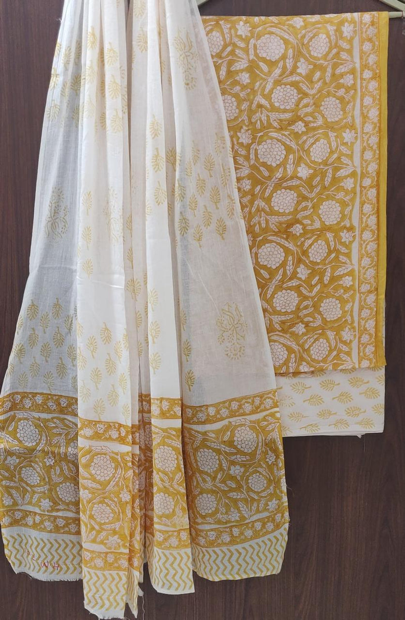 DESIGNER HAND BLOCK PRINT PURE COTTON SUIT WITH COTTON MULMUL DUPATTA(MALYS325)