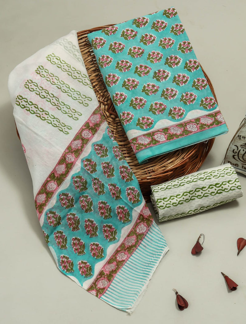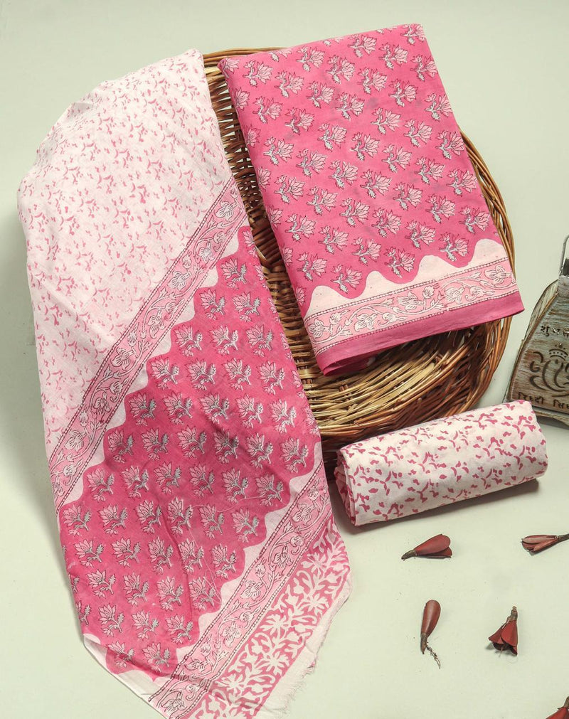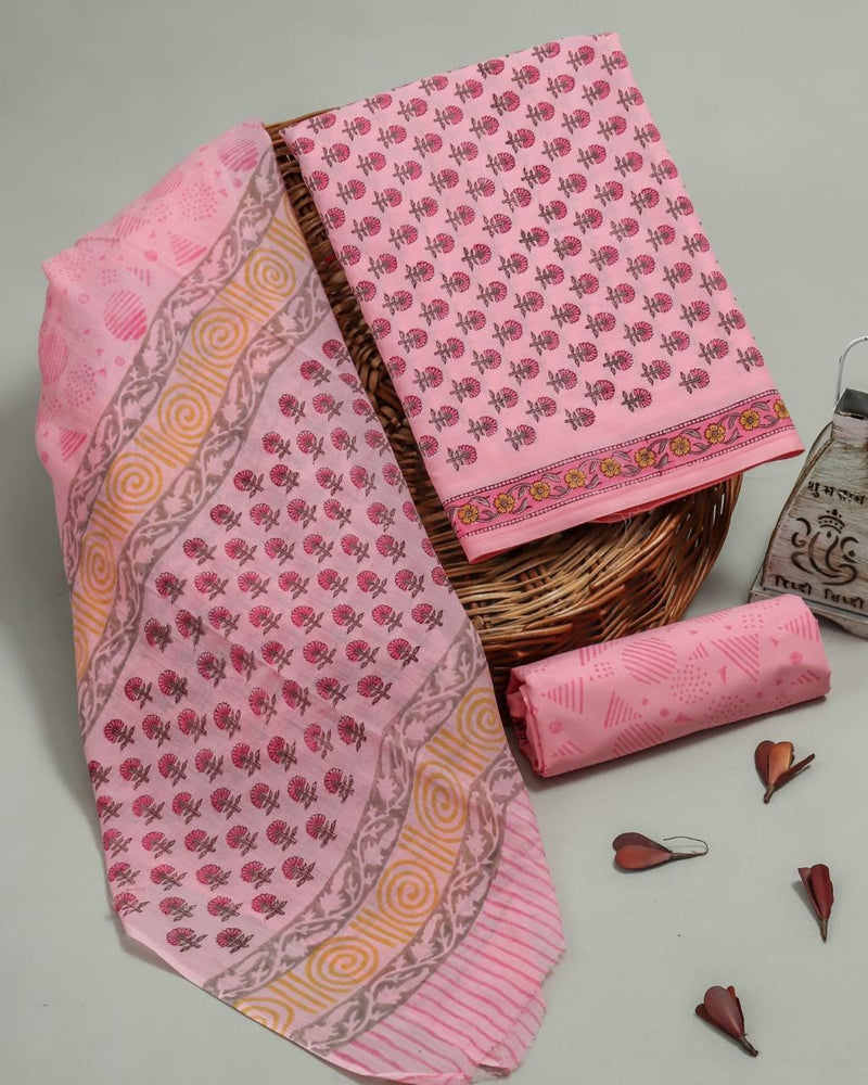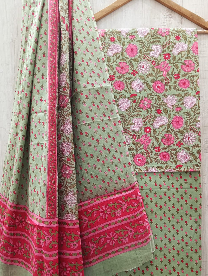 DESIGNER HAND BLOCK PRINT PURE COTTON SUIT WITH DORIA DUPATTA (3CKDYS104)