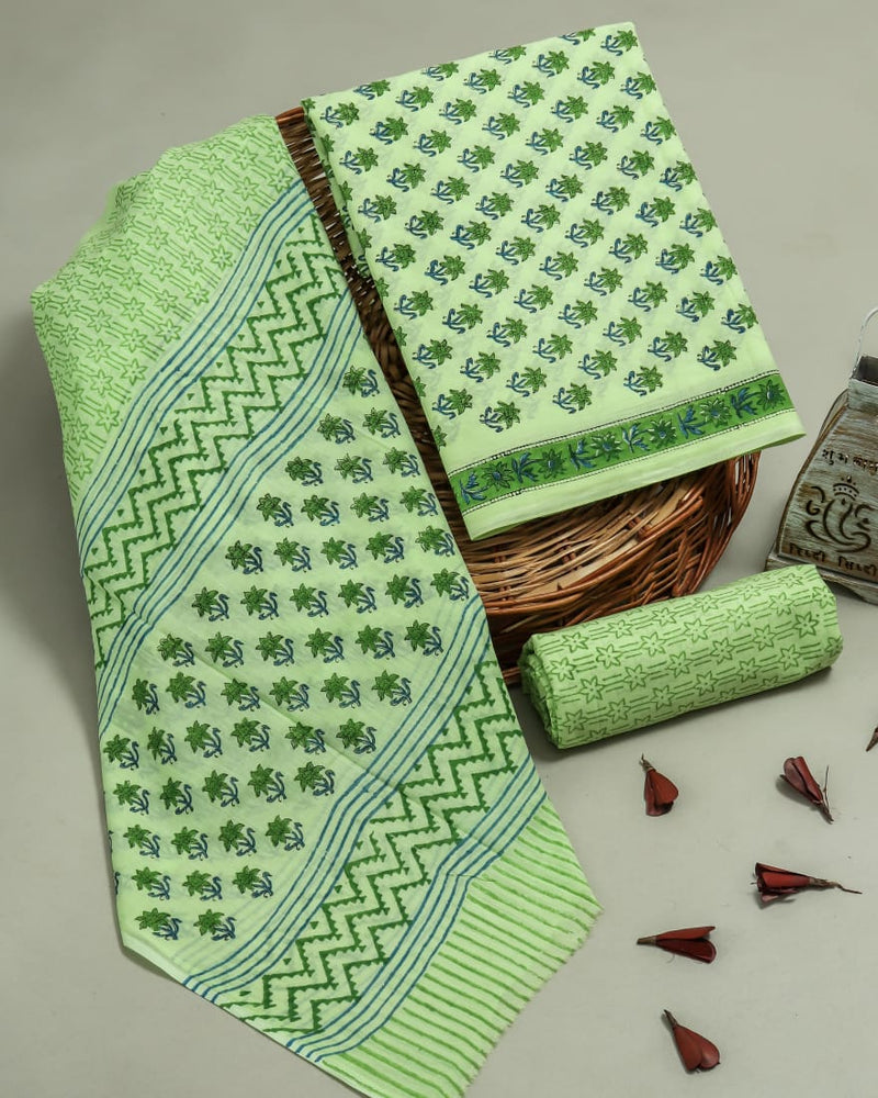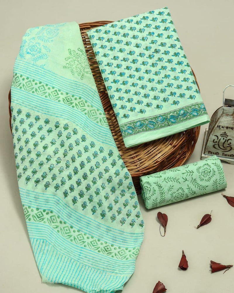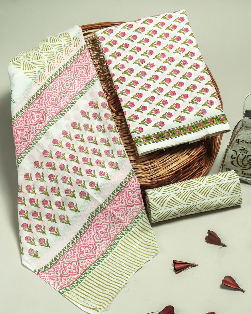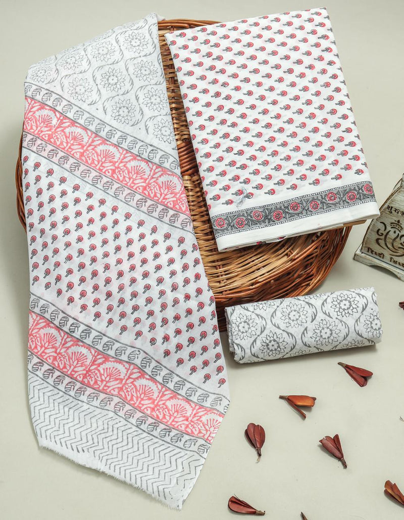 DESIGNER HAND BLOCK PRINT PURE COTTON SUIT WITH DORIA DUPATTA (3CKDYS104)