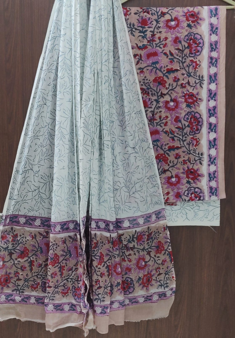 DESIGNER HAND BLOCK PRINT PURE COTTON SUIT WITH COTTON MULMUL DUPATTA( MALYS59)