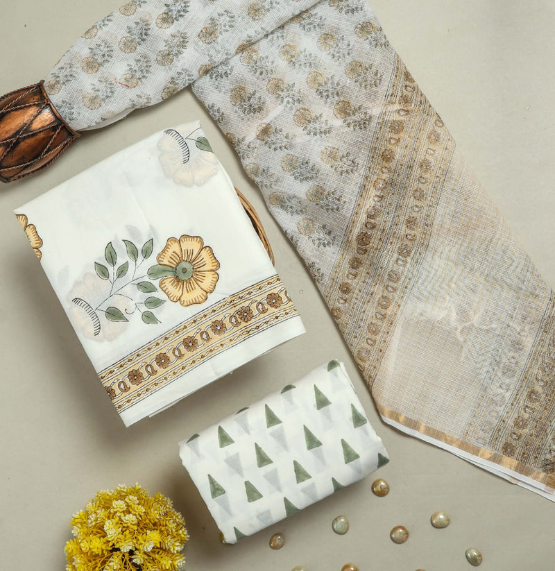 DESIGNER HAND BLOCK PRINT PURE COTTON SUIT WITH KOTA DORIA DUPATTA (3CKDYS106)