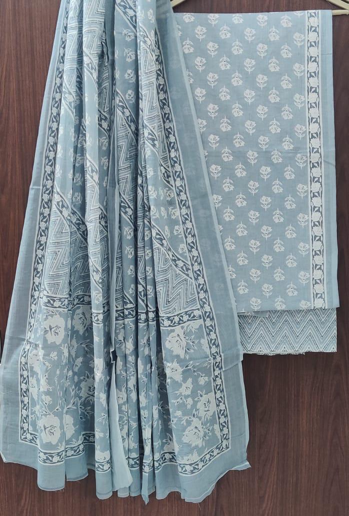 DESIGNER HAND BLOCK PRINT PURE COTTON SUIT WITH COTTON MULMUL DUPATTA (MALYS67)