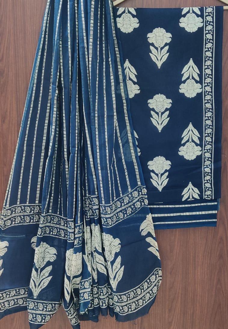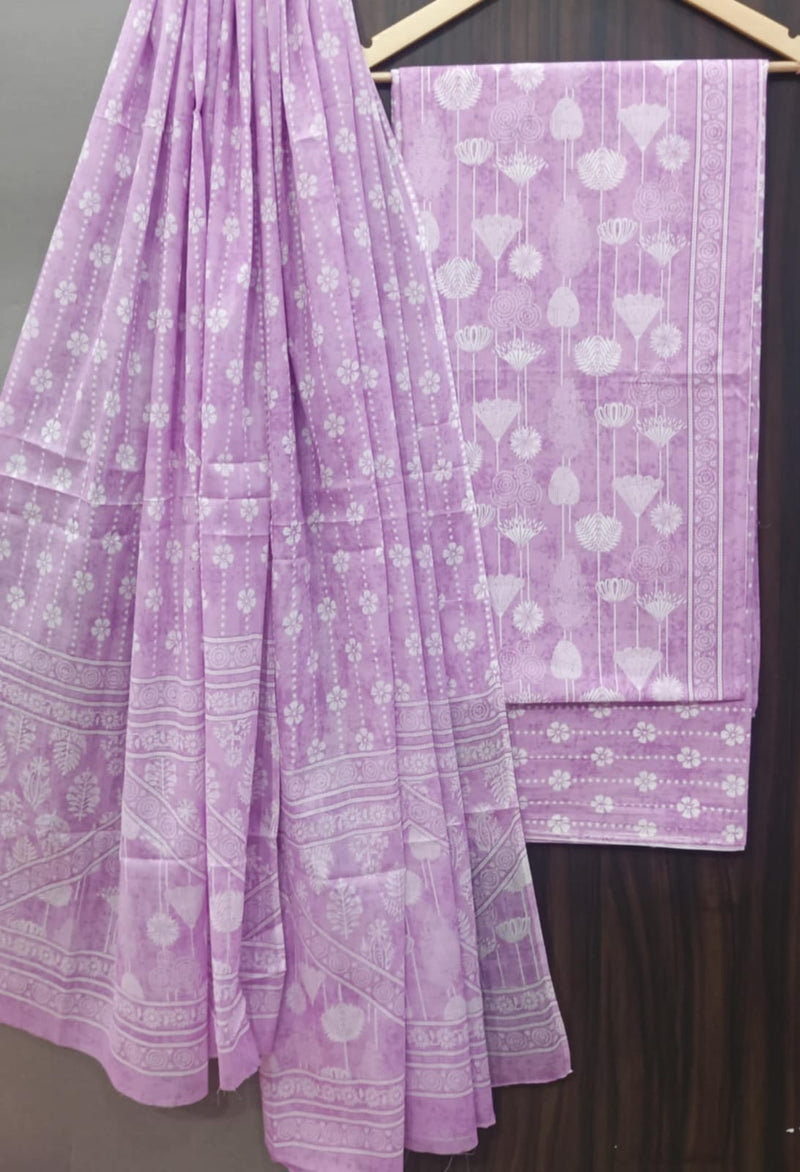 DESIGNER HAND BLOCK PRINT PURE COTTON SUIT WITH COTTON MULMUL DUPATTA(MALYS141)