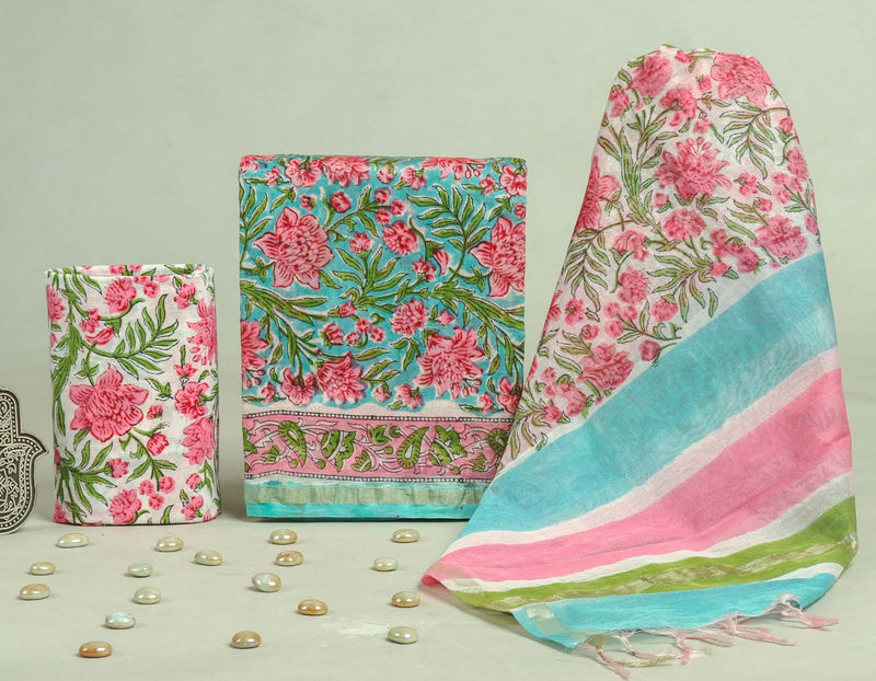 ELEGAT HAND BLOCK PRINT COTTON SUIT SET WITH MULMUL DUPATTA (MALYS301)