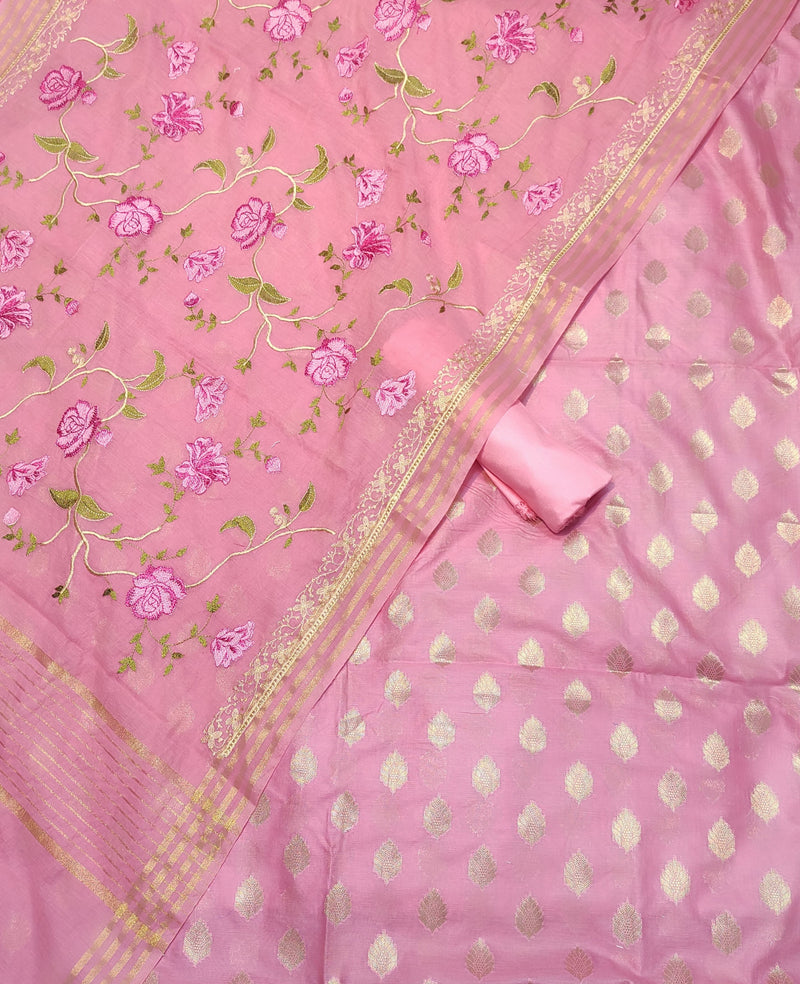 EXCLUSIVE BANARASI PURE CHANDERI SILK SELF EMBROIDERY SUIT (BPCSES01)