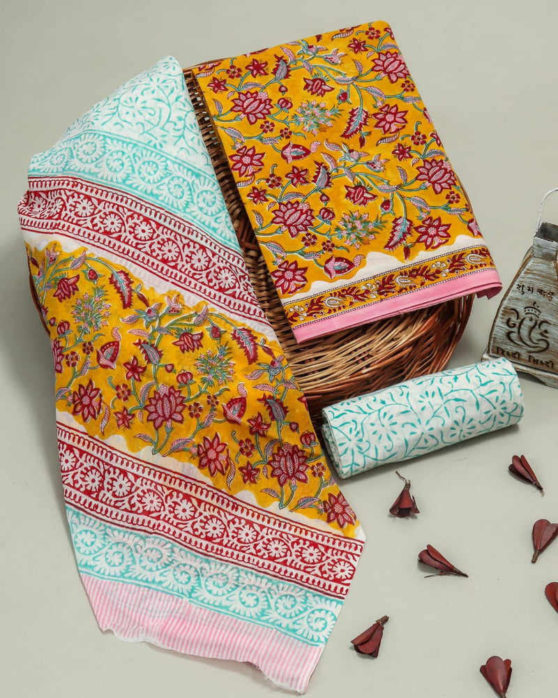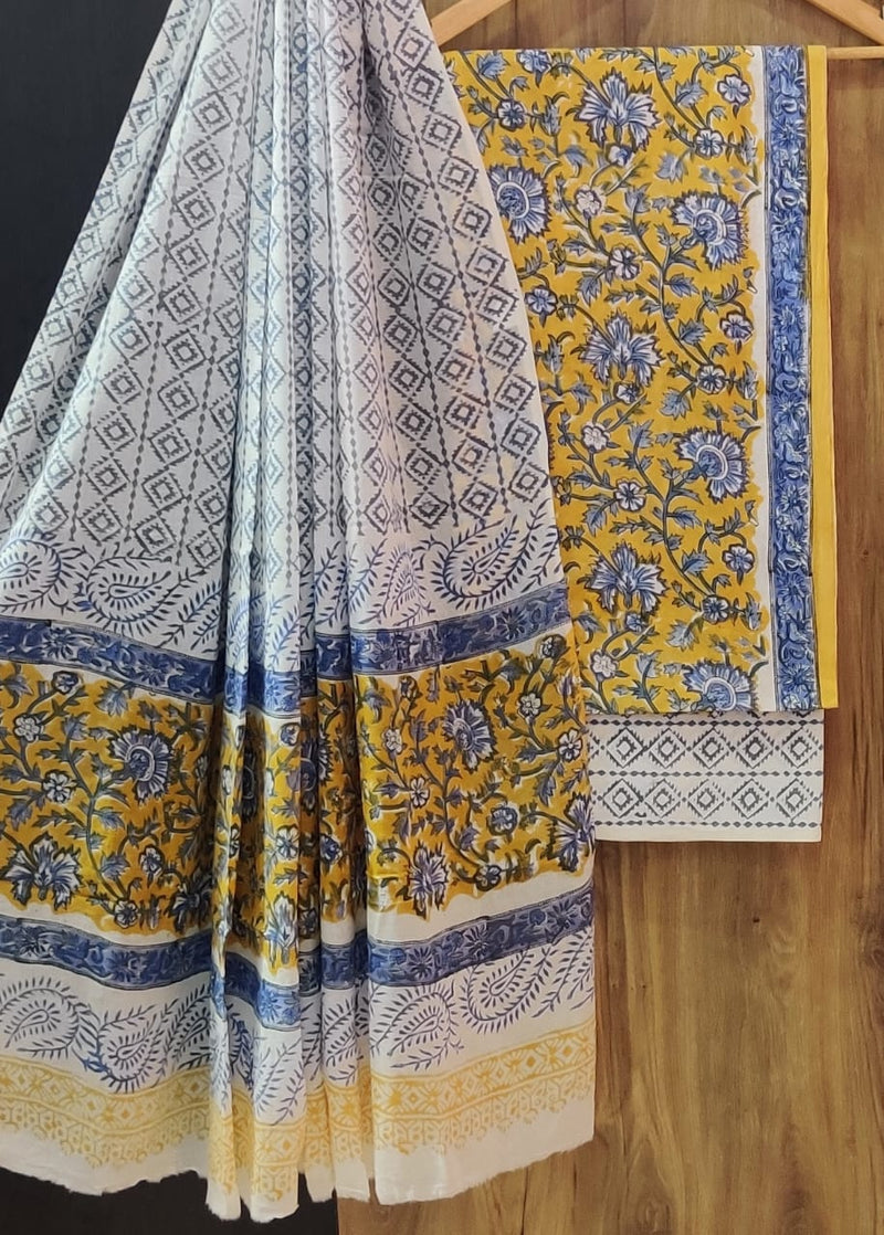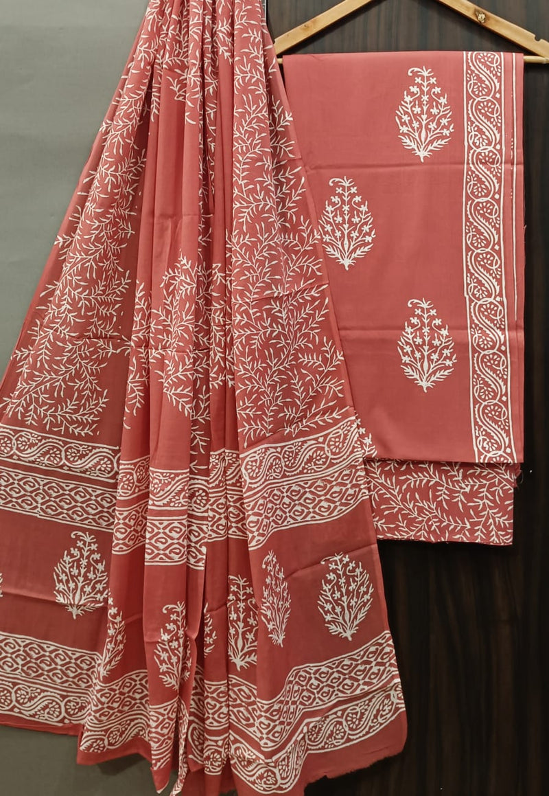 EXCLUSIVE HAND BLOCK PRINT PURE COTTON SUIT WITH COTTO MULMUL DUPATTA (MALYS123)