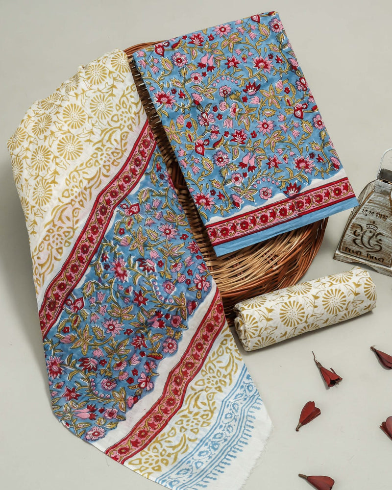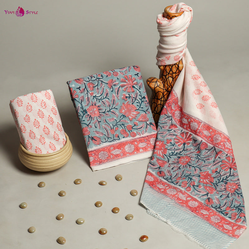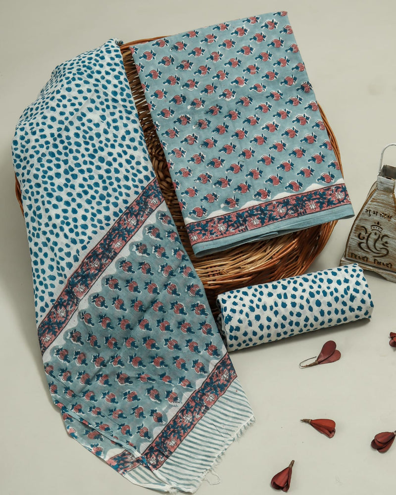 EXCLUSIVE HAND BLOCK PRINT PURE COTTON SUIT WITH COTTO MULMUL DUPATTA (MALYS127)