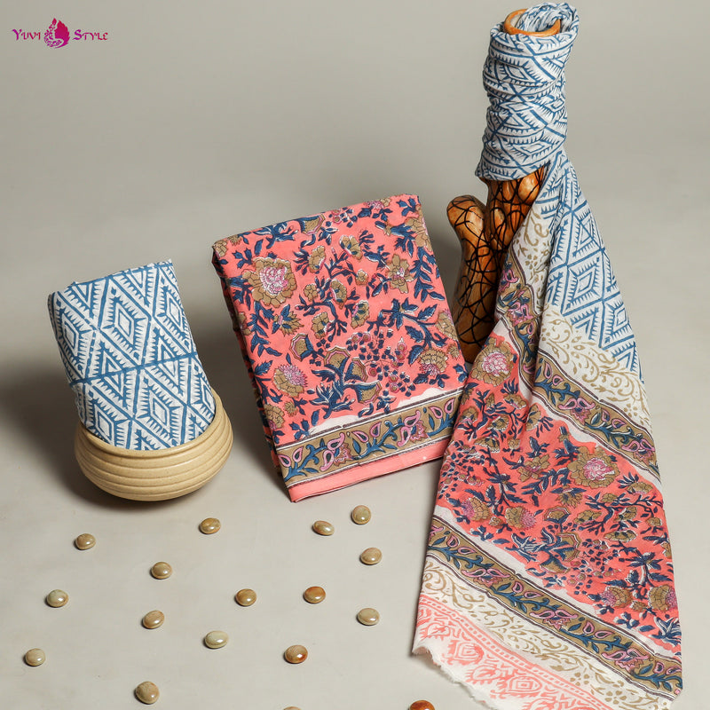 EXCLUSIVE HAND BLOCK PRINT PURE COTTON SUIT WITH COTTO MULMUL DUPATTA (MALYS208)