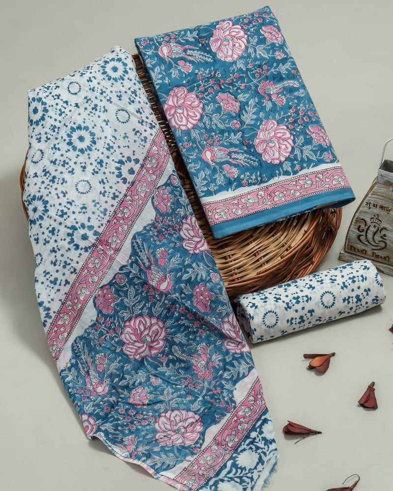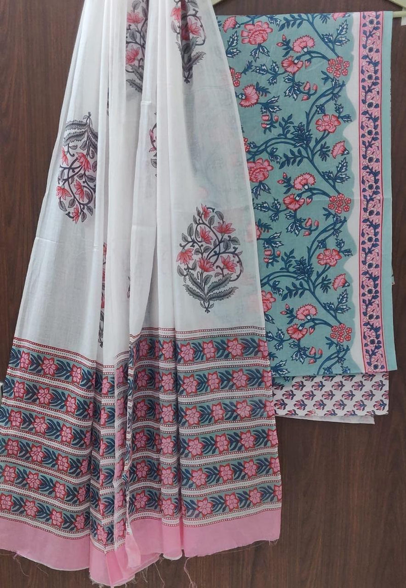 EXCLUSIVE HAND BLOCK PRINT PURE COTTON SUIT WITH COTTO MULMUL DUPATTA (MALYS250)
