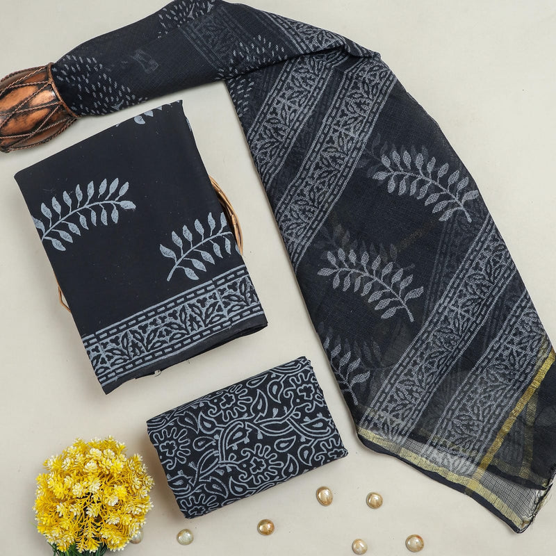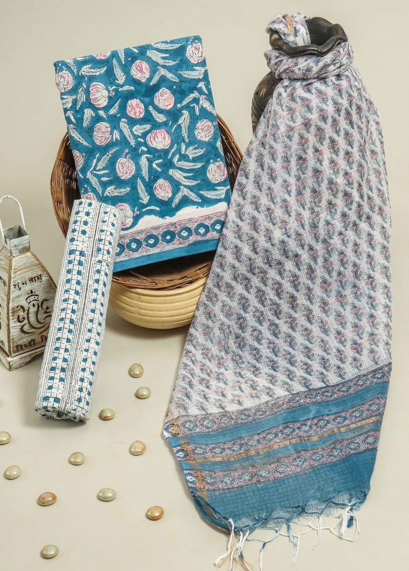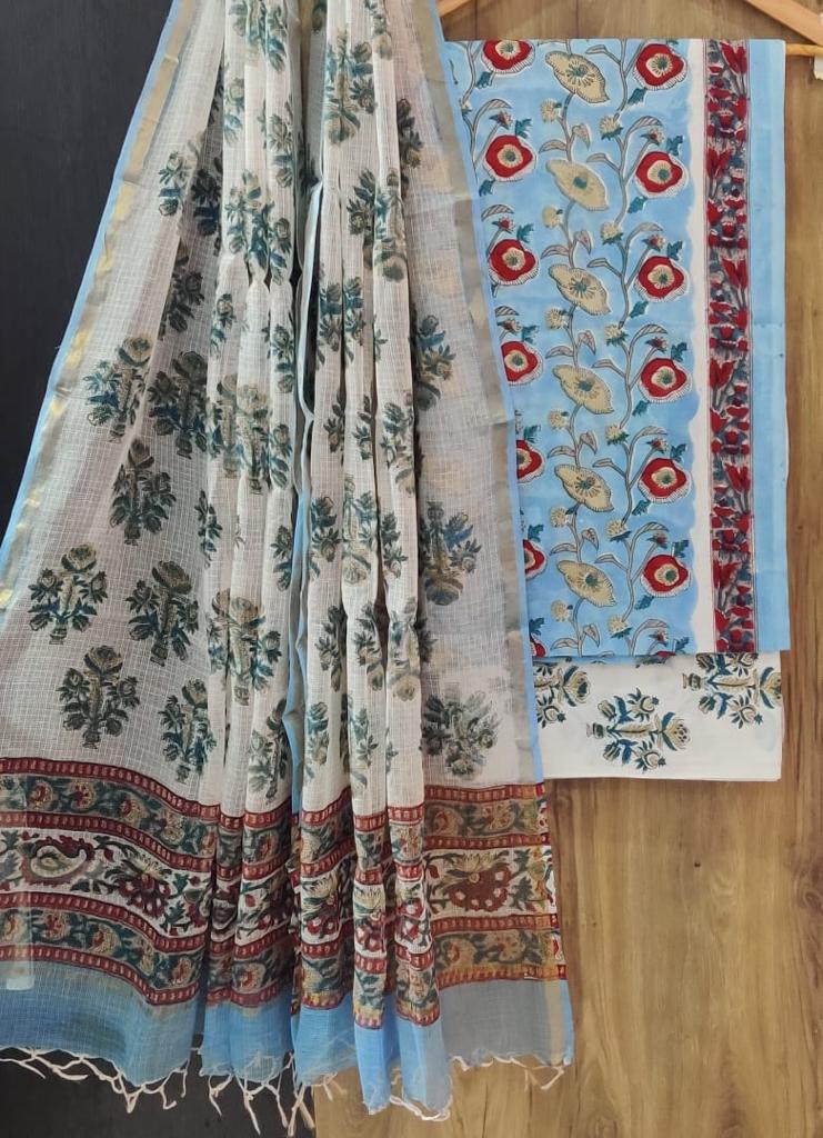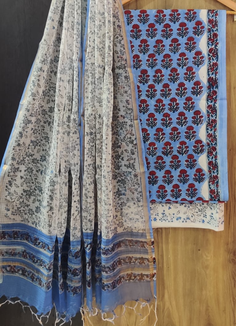 EXCLUSIVE HAND BLOCK PRINT PURE COTTON SUIT WITH KOTA DORIYA DUPTTA (3CKDYS118)