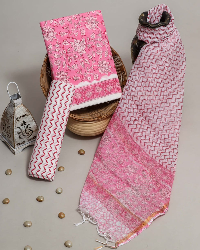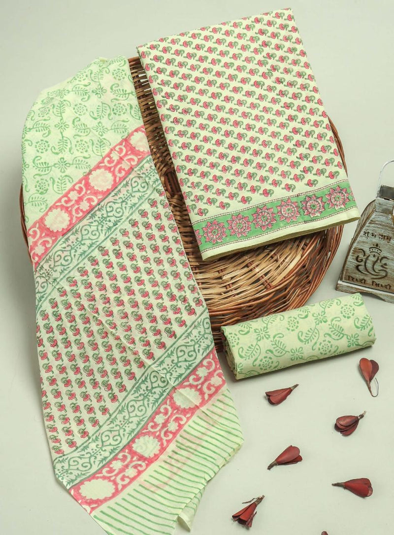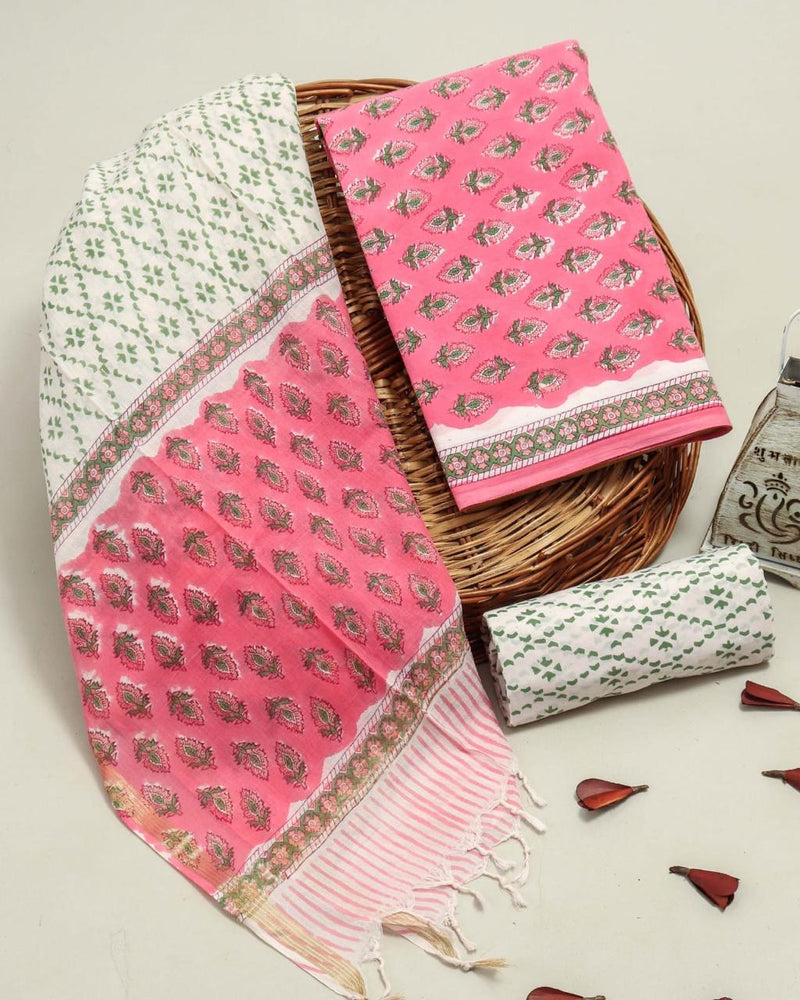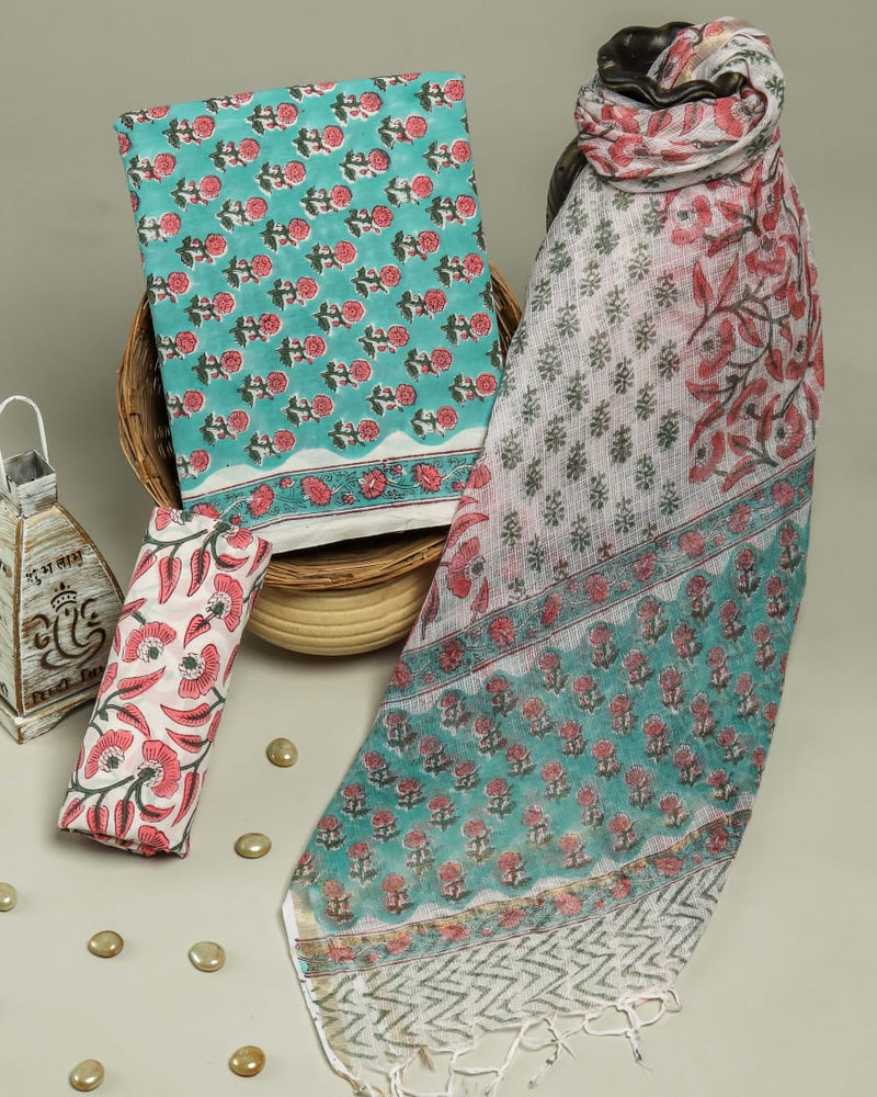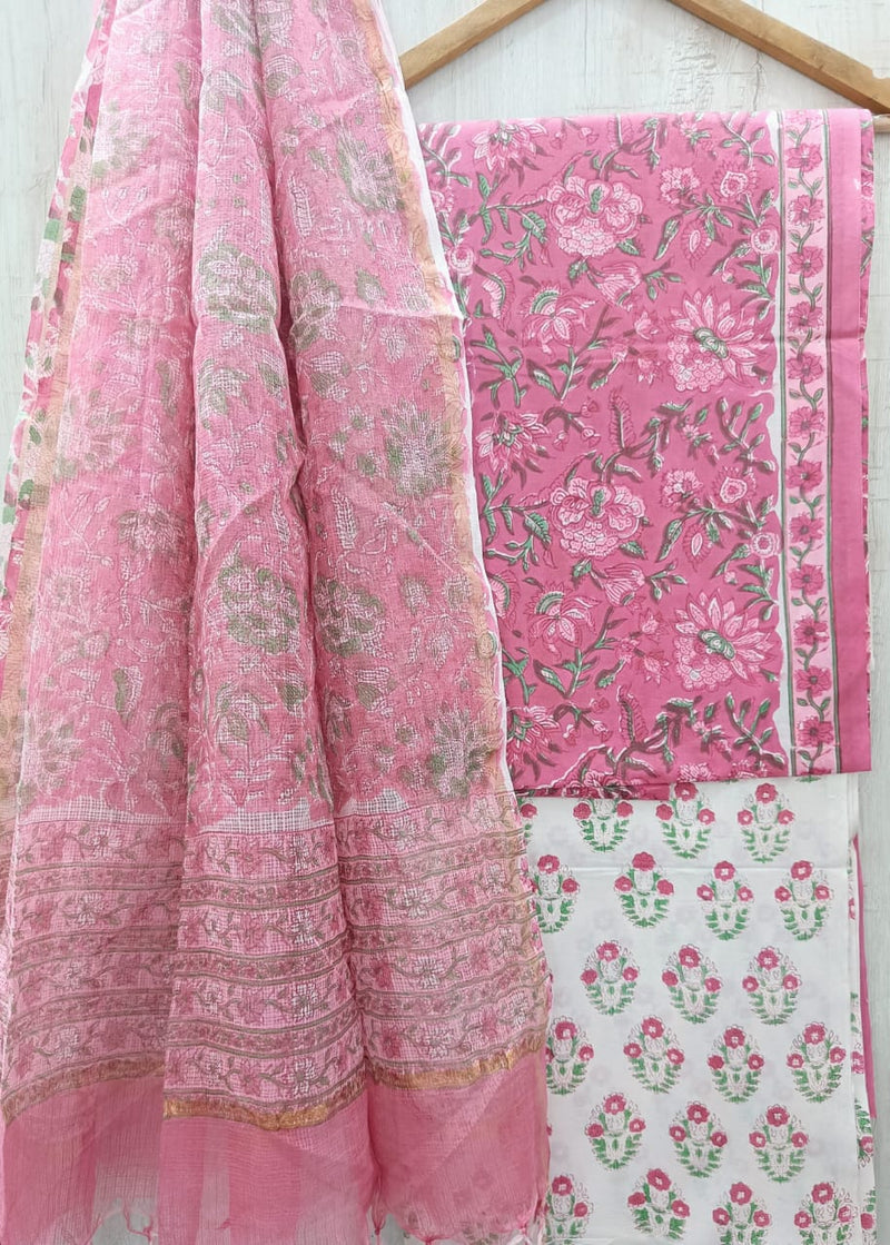 EXCLUSIVE HAND BLOCK PRINT PURE COTTON SUIT WITH SILK KOTA DORIYA DUPTTA (3CKDYS159)