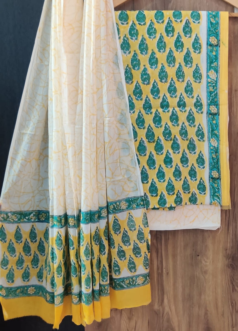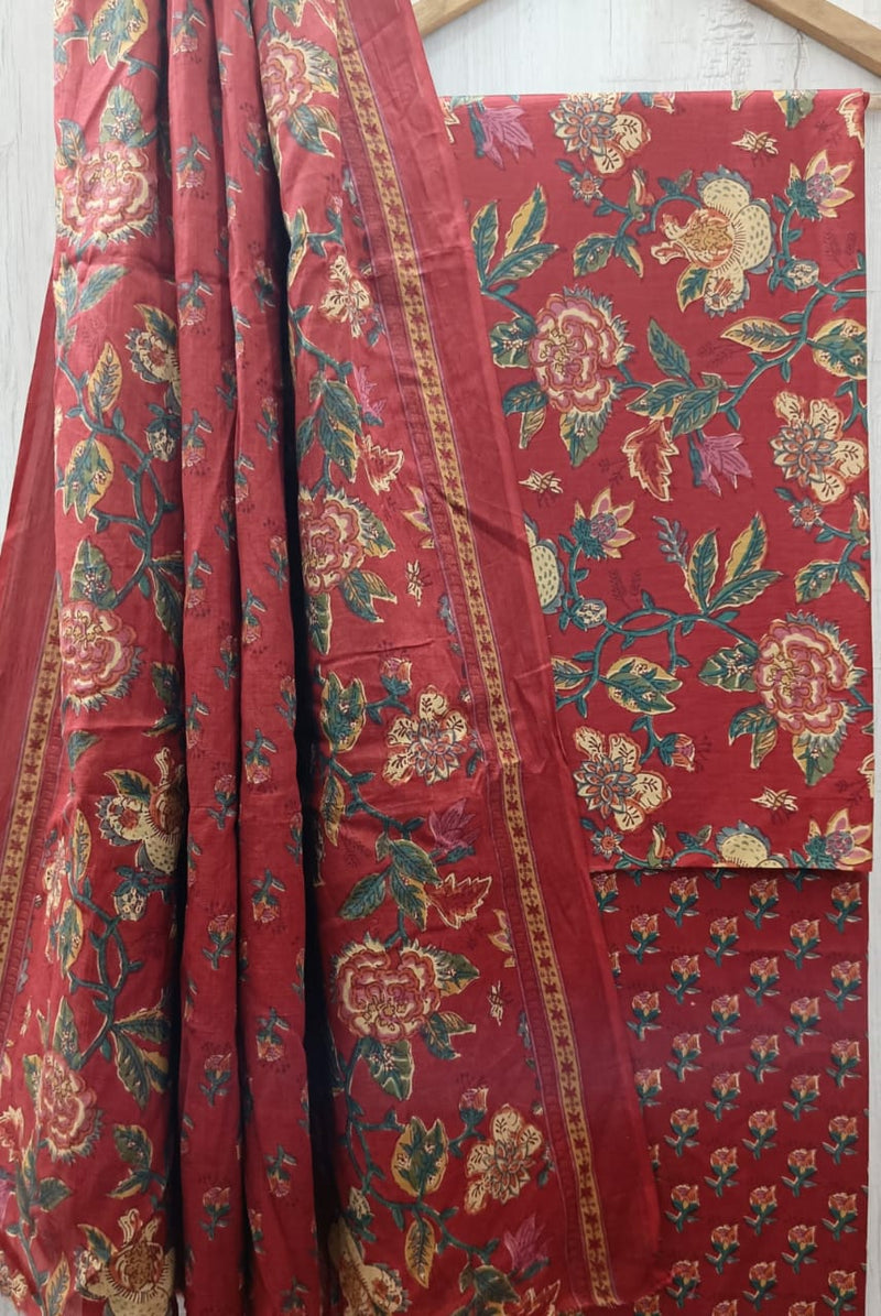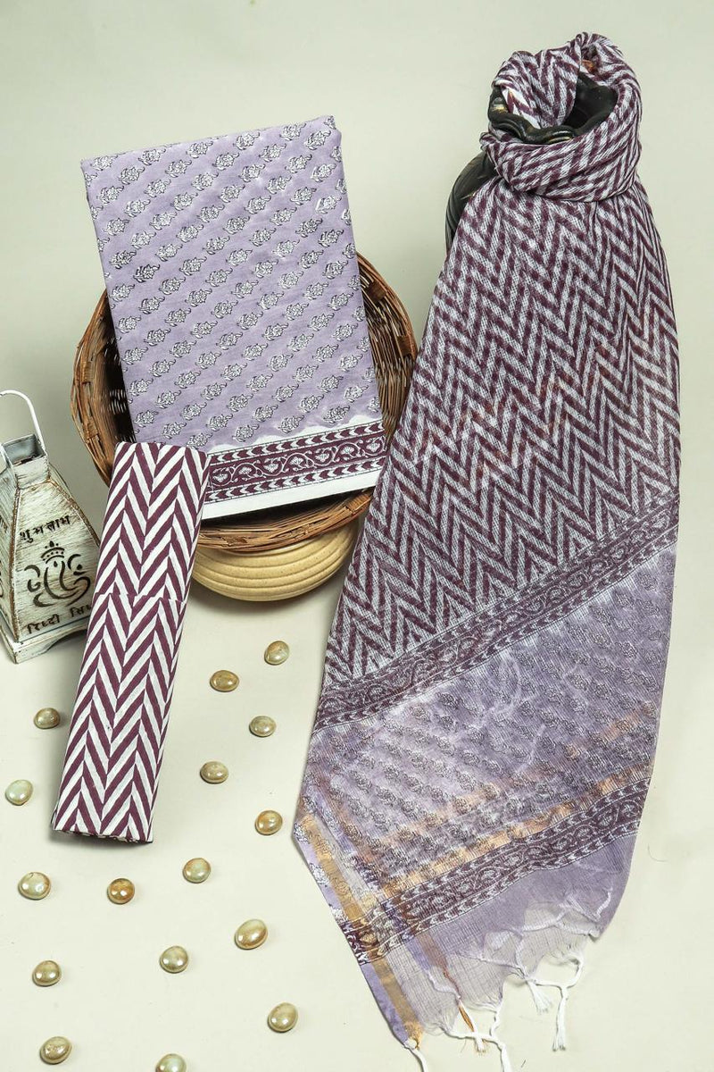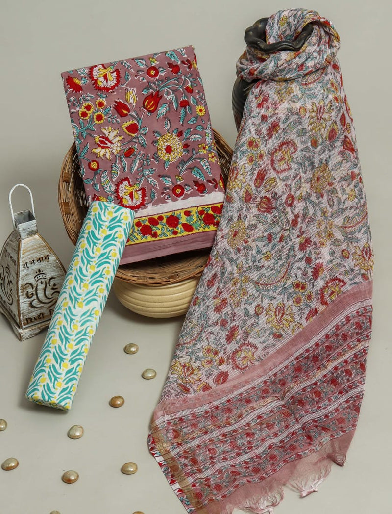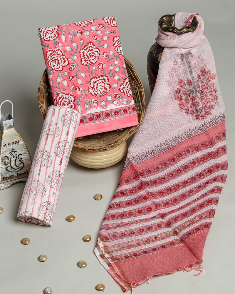EXCLUSIVE HAND BLOCK PRINT PURE COTTON SUIT WITH SILK KOTA DORIYA DUPTTA (3CKDYS159)