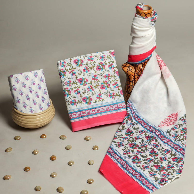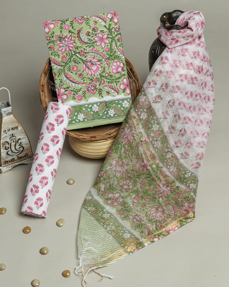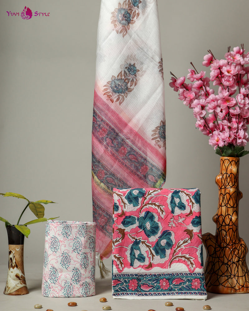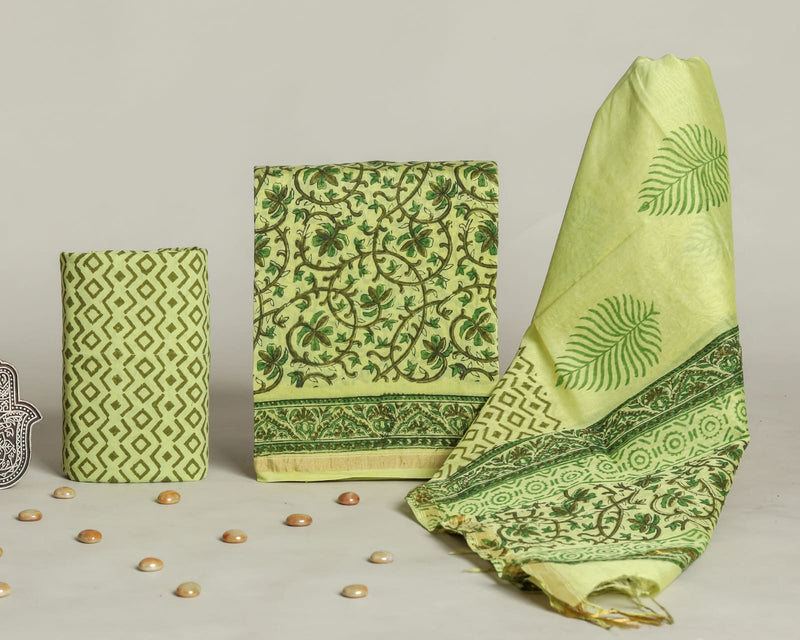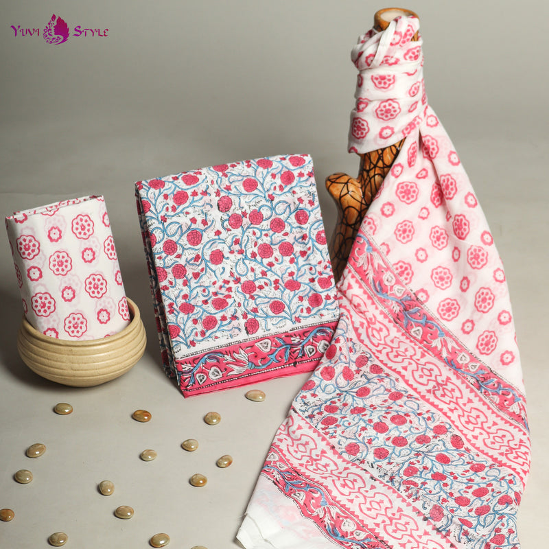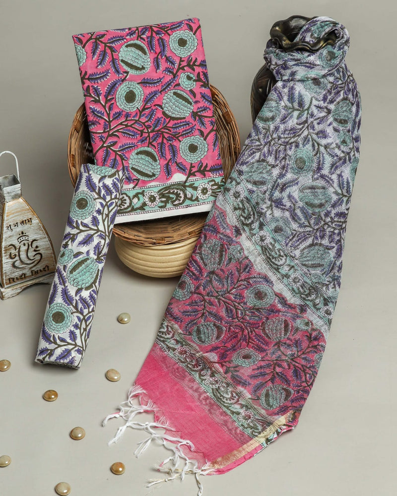 EXCLUSIVE HAND BLOCK PRINT PURE COTTON SUIT WITH SILK KOTA DORIYA DUPTTA (3CKDYS159)