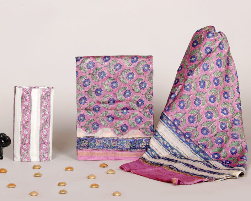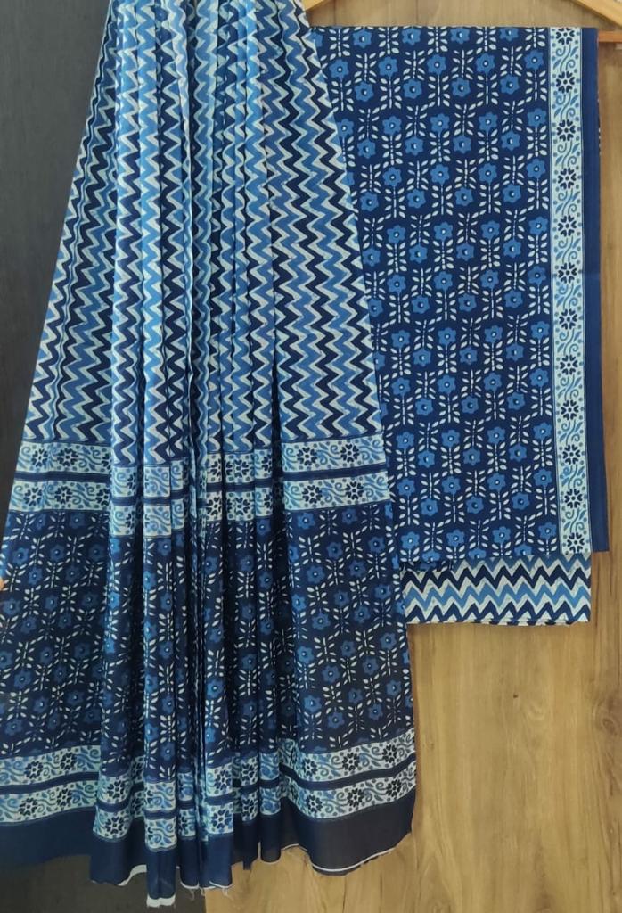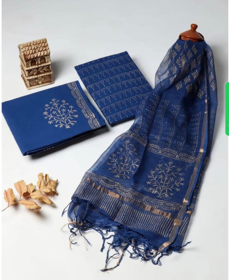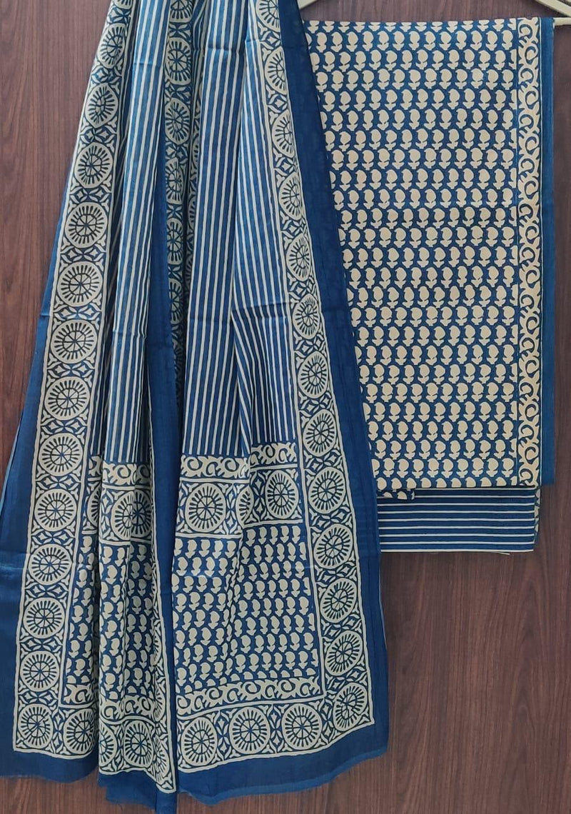 EXCLUSIVE INDIGO HAND BLOCK CHANDERI SILK SUIT SET WITH CHANDERI DUPATTA (CHDYS136)