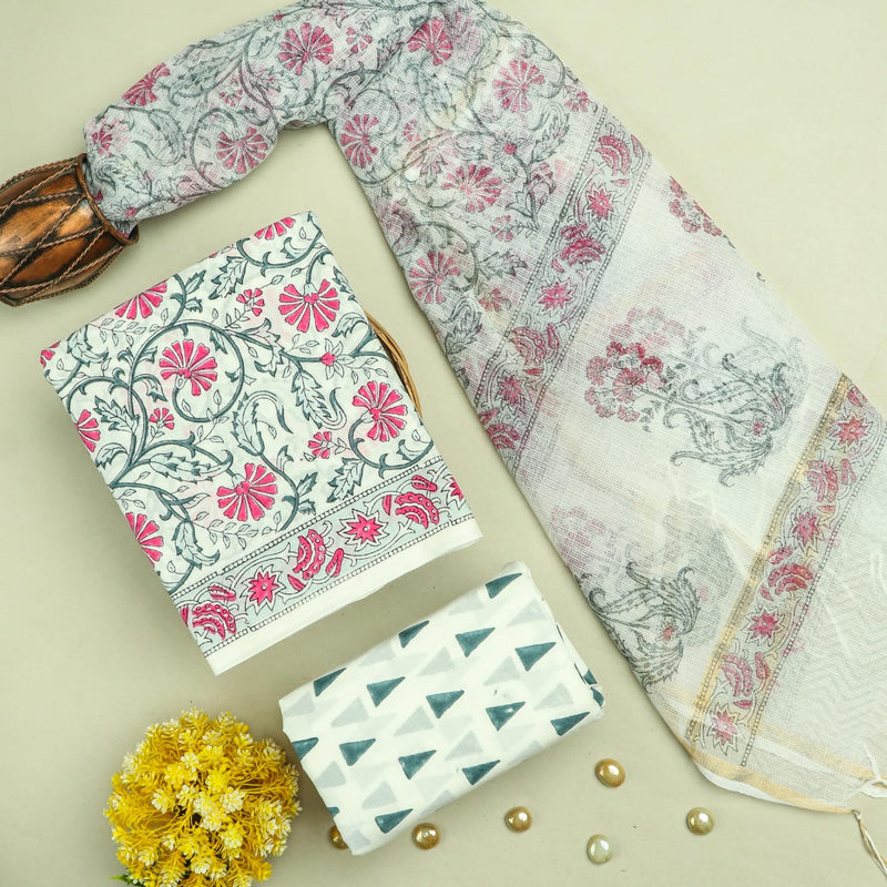 EXCLUSIVE HAND BLOCK PRINT PURE COTTON SUIT WITH KOTA DORIYA DUPTTA (3CKDYS164)