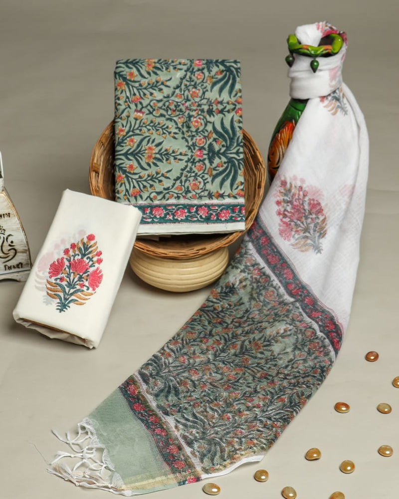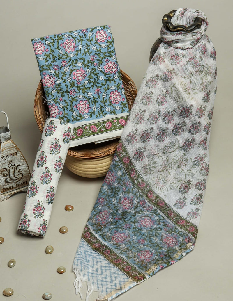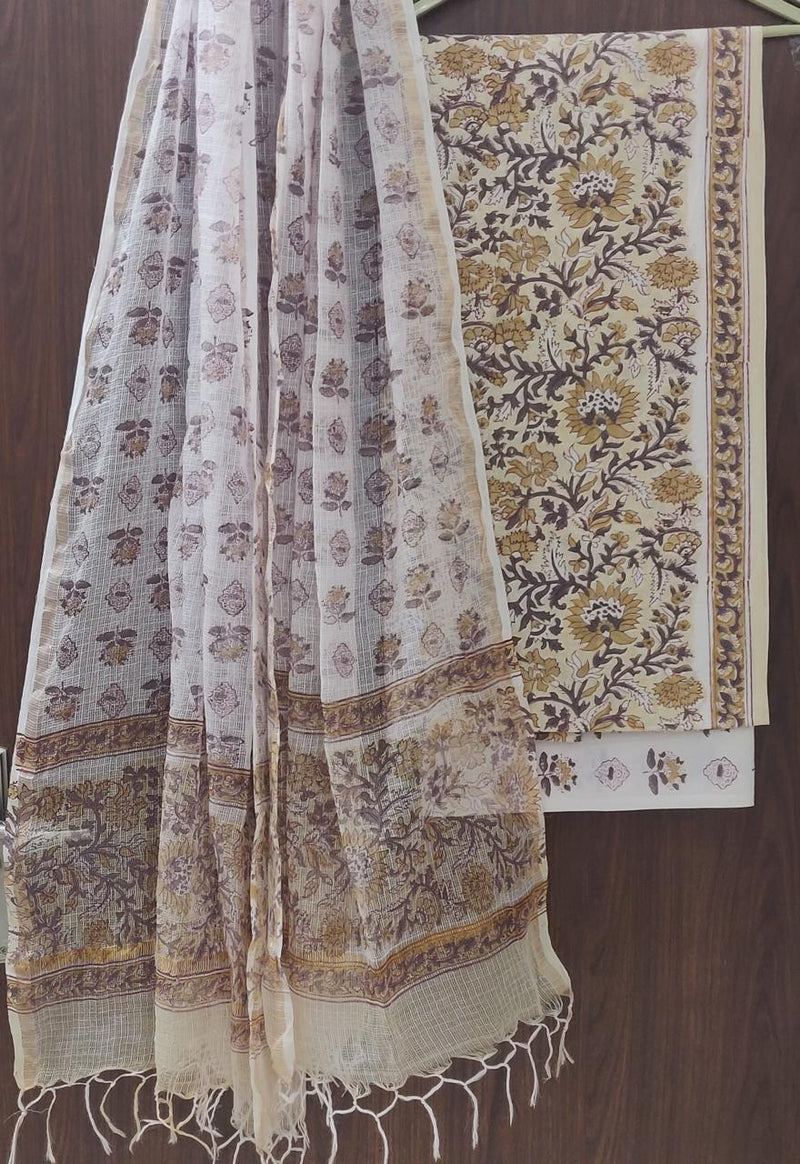 EXCLUSIVE HAND BLOCK PRINT PURE COTTON SUIT WITH KOTA DORIYA DUPTTA (3CKDYS120)