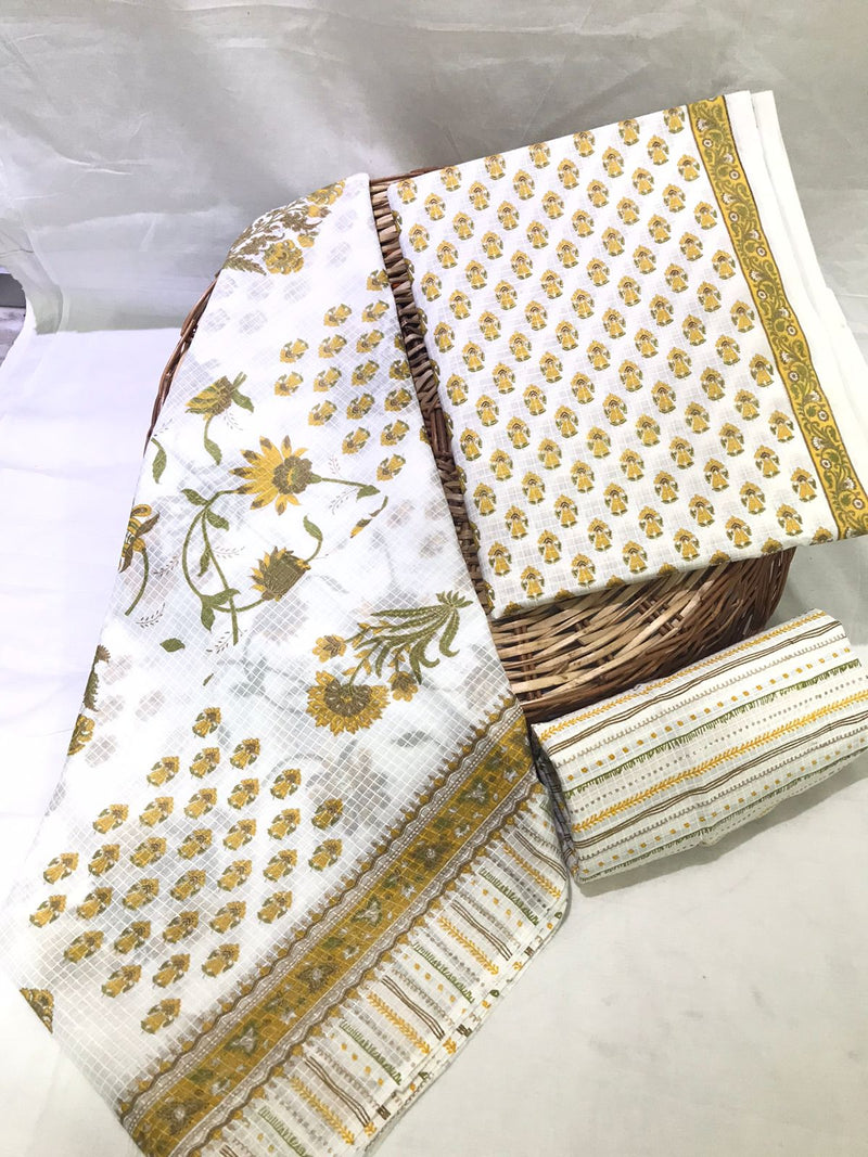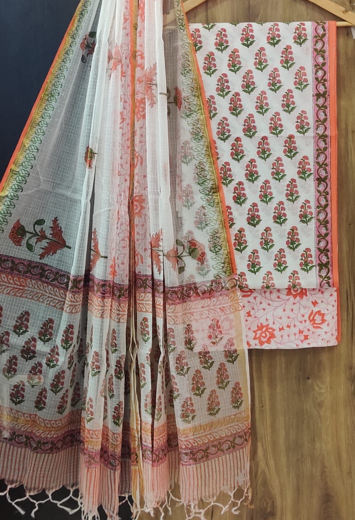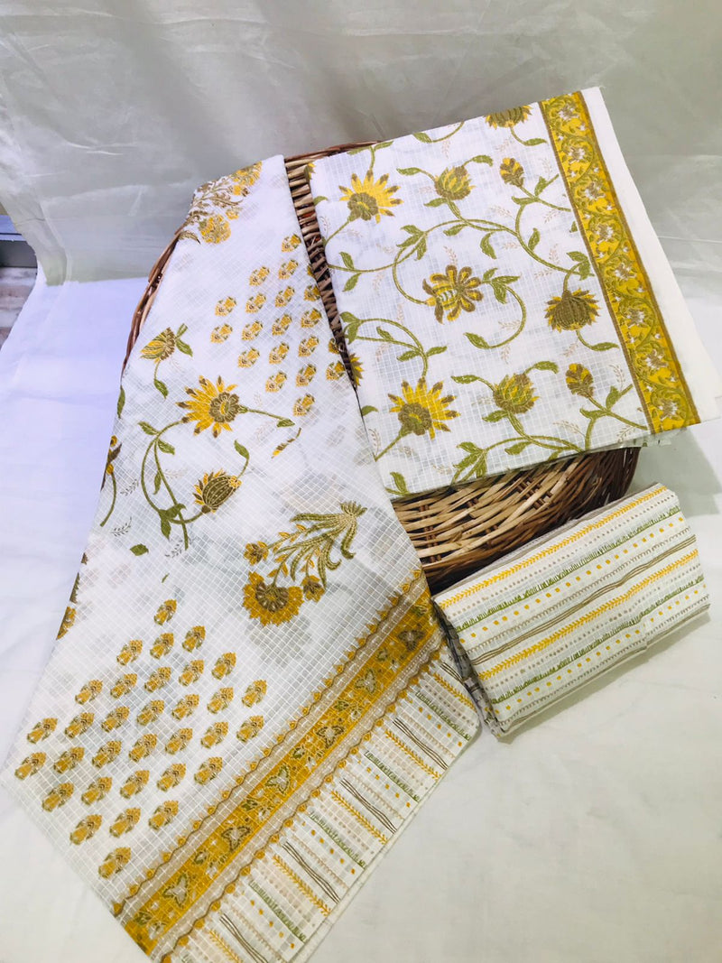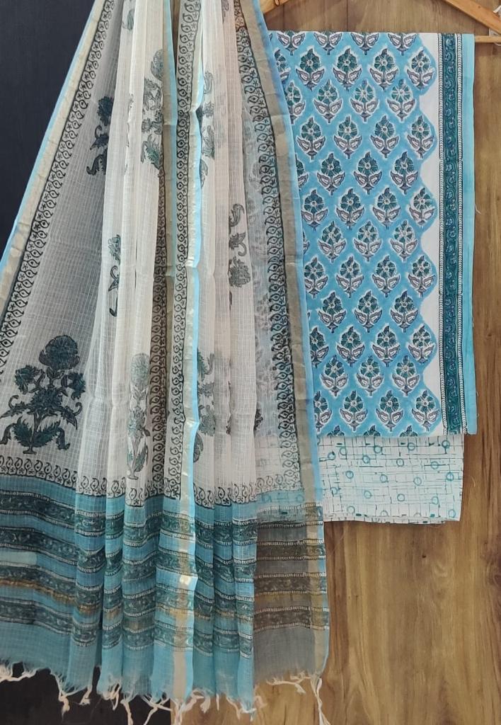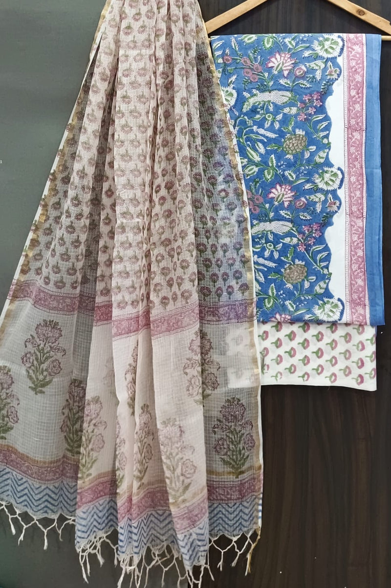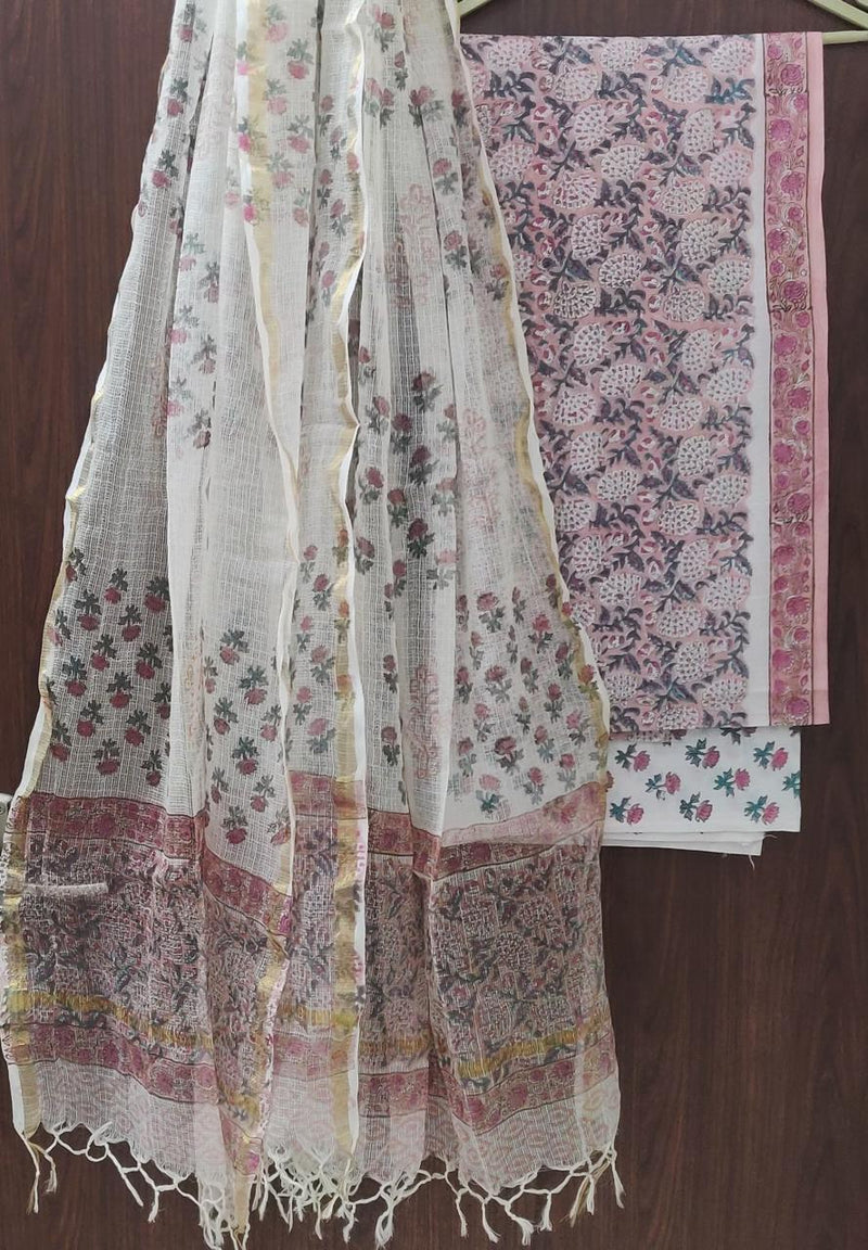 EXCLUSIVE HAND BLOCK PRINT PURE COTTON SUIT WITH KOTA DORIYA DUPTTA (3CKDYS130)