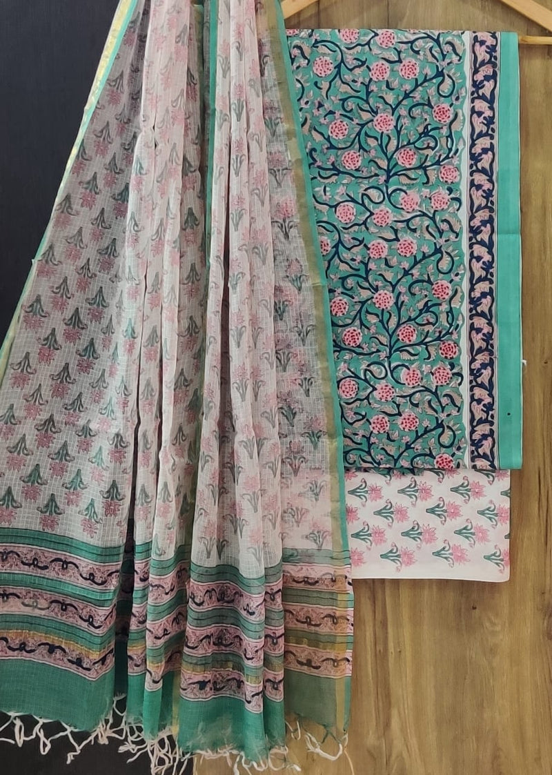 EXCLUSIVE HAND BLOCK PRINT PURE COTTON SUIT WITH KOTA DORIYA DUPTTA (3CKDYS180)
