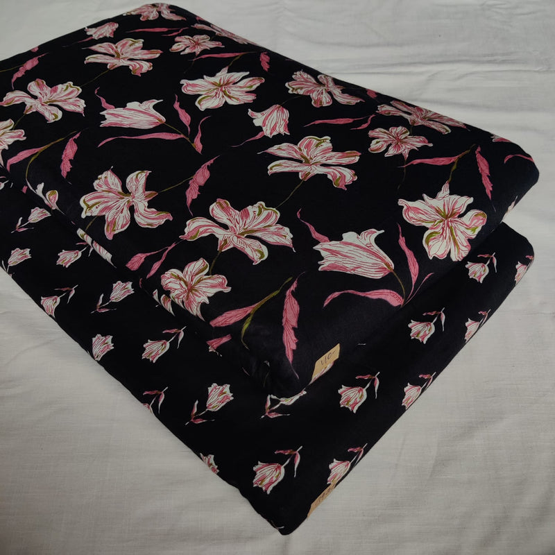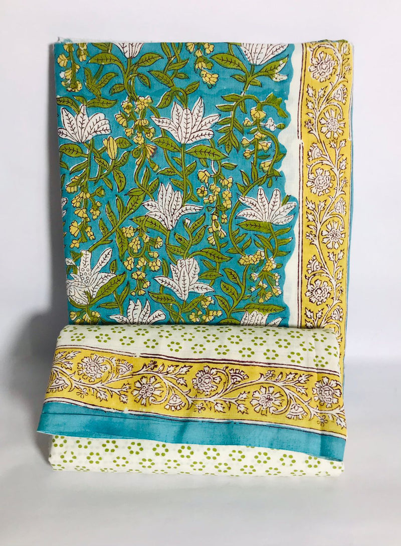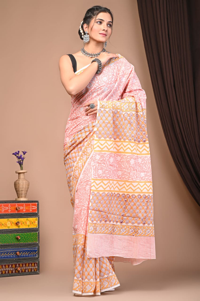 Flower Print Hand Block Print Cotton Mulmul Saree with Blouse (CMSYS01)