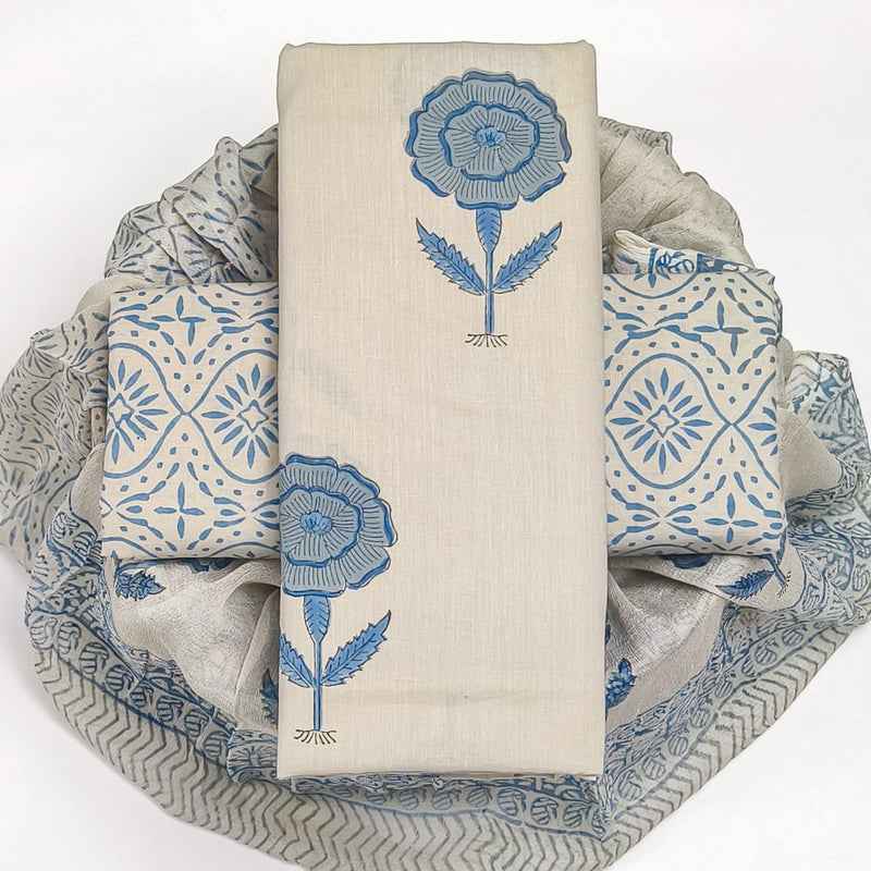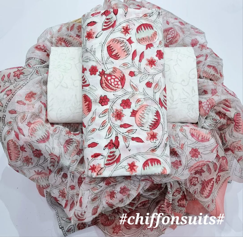 HAND BLOCK PRINT PURE COTTON SUIT WITH CHIFFION DUPTTA (PCHFY87)