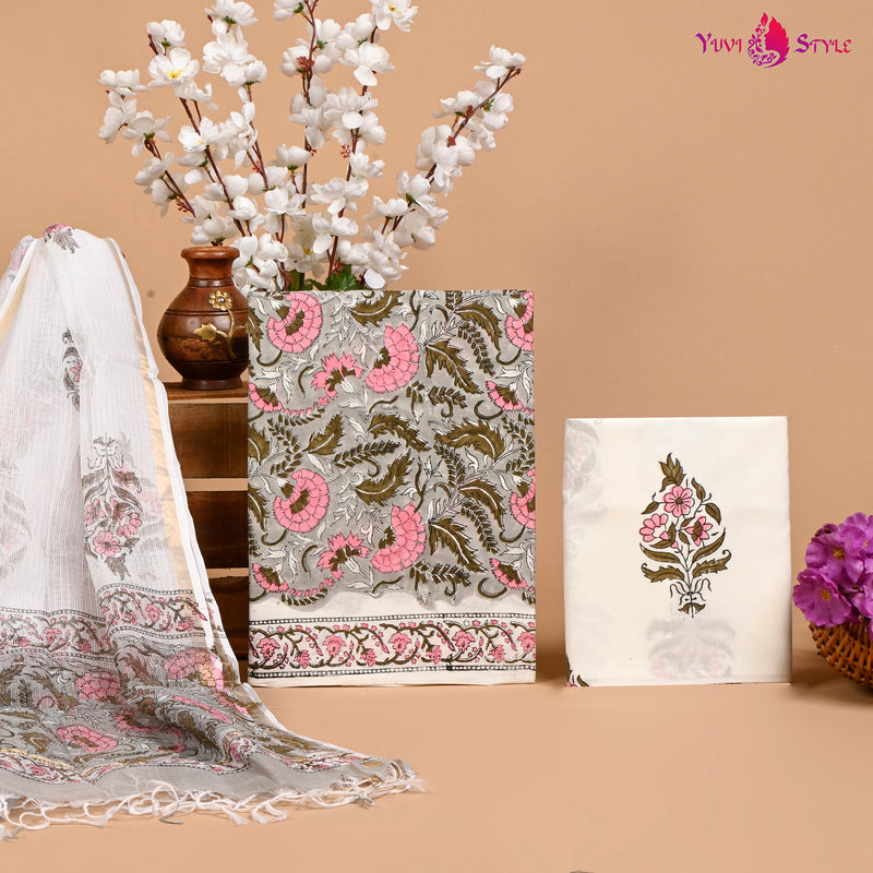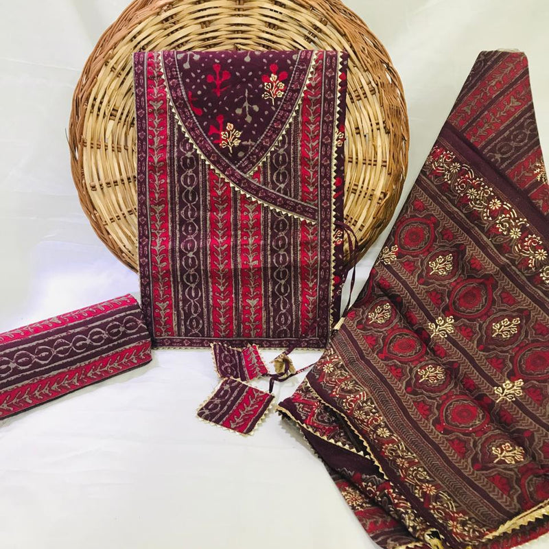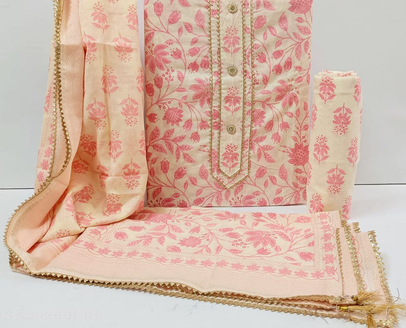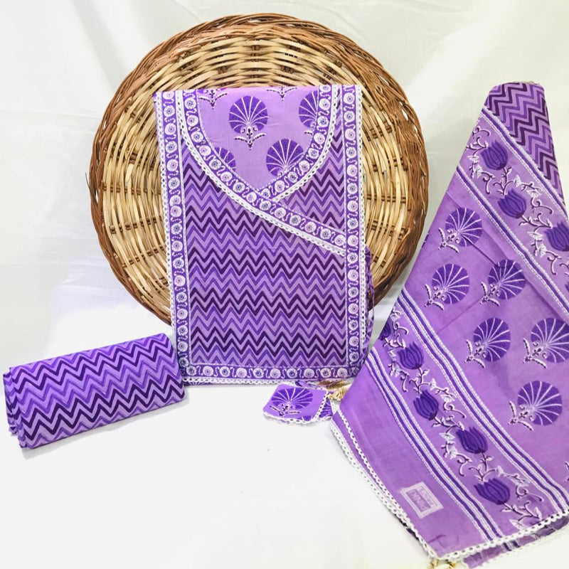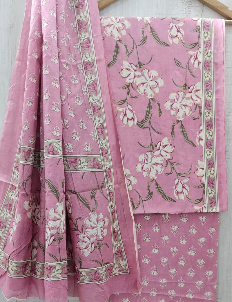 HAND BLOCK PRINT PURE COTTON SUIT WITH DORIA DUPATTA(3CKDYS64)