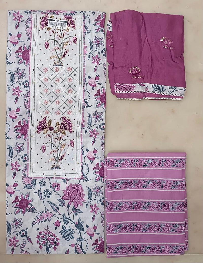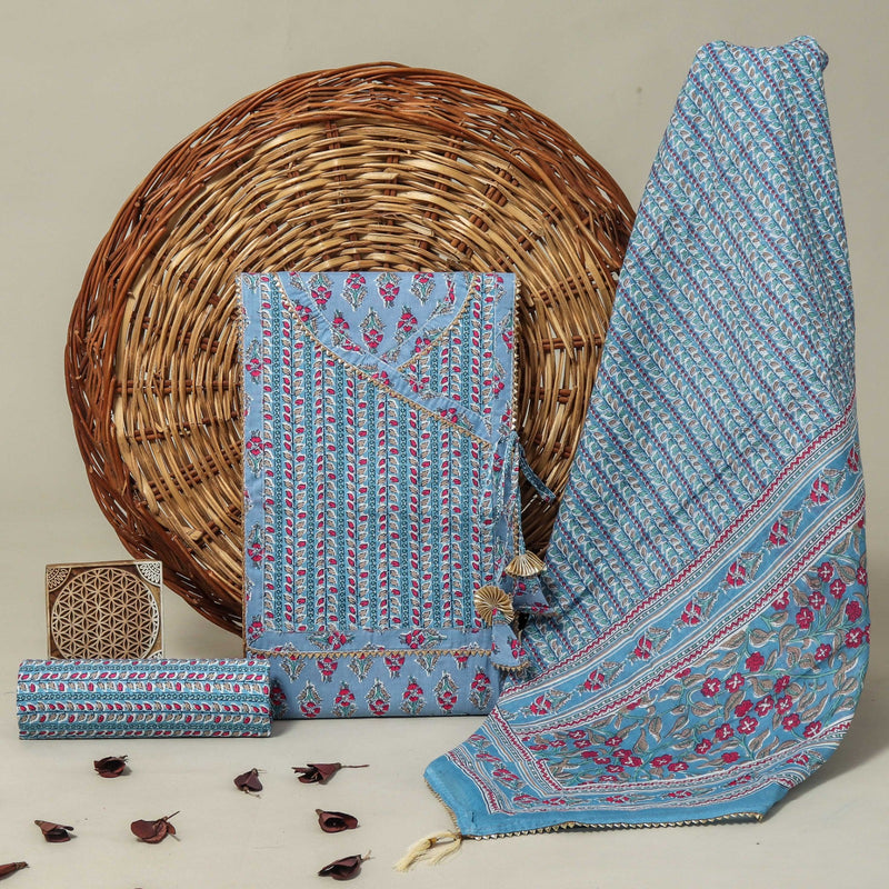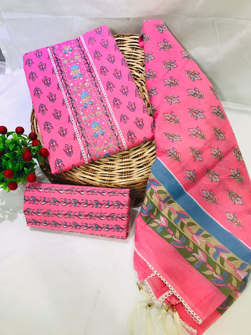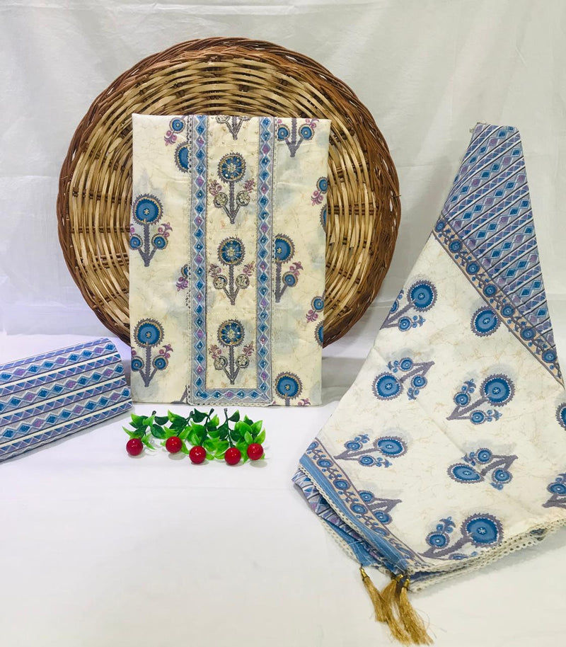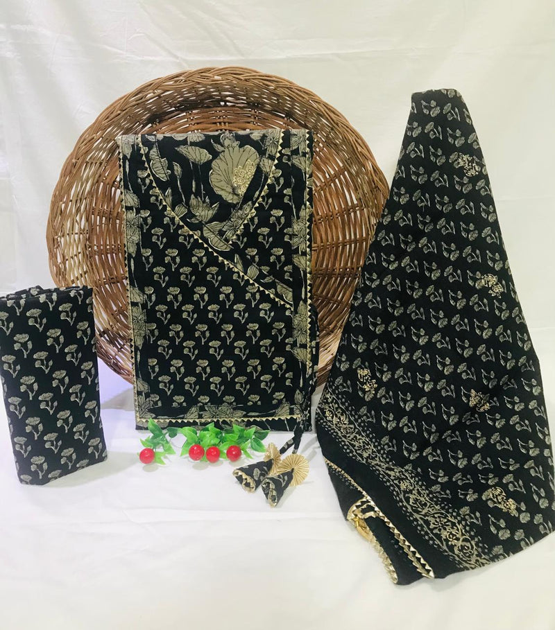 HAND BLOCK PRINT PURE COTTON SUIT WITH DORIA DUPATTA(3CKDYS64)
