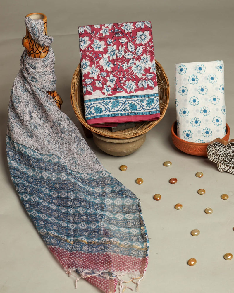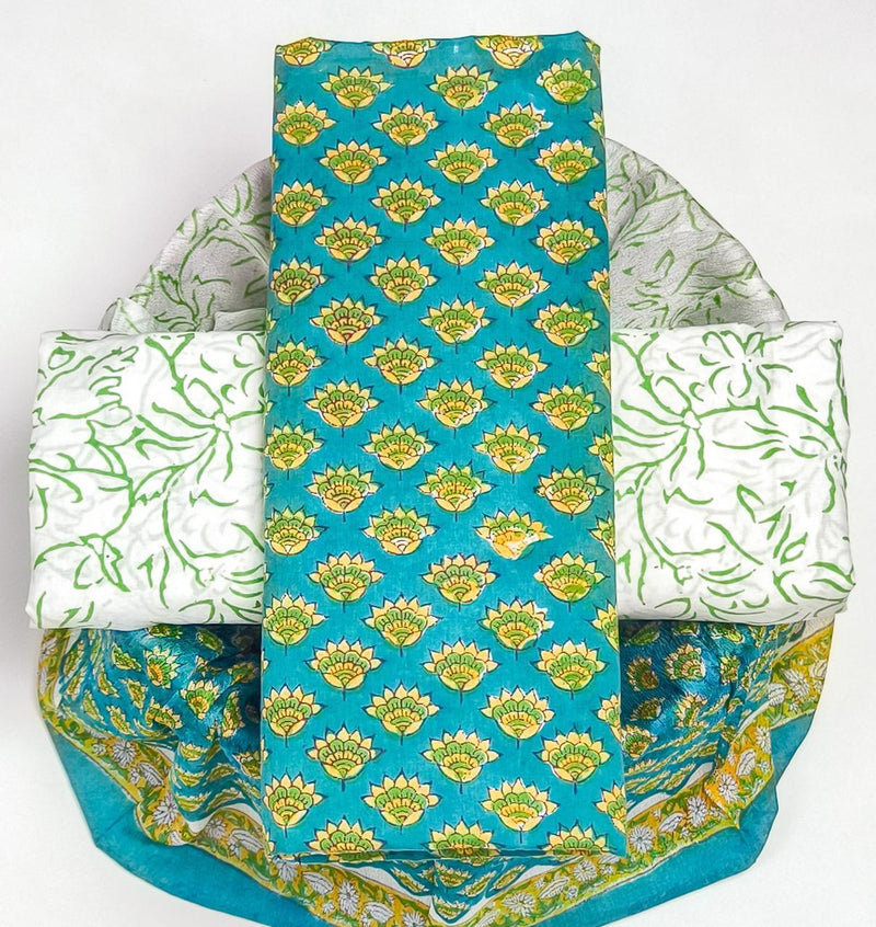 HAND BLOCK PRINT PURE COTTON SUIT WITH CHIFFION DUPTTA (PCHFY86)