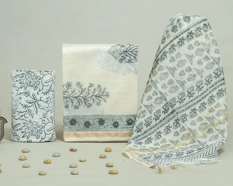 HAND BLOCK CHANDERI SILK SUIT SET WITH CHANDERI DUPATTA (CHDYS265)