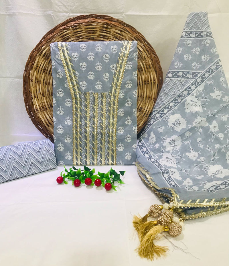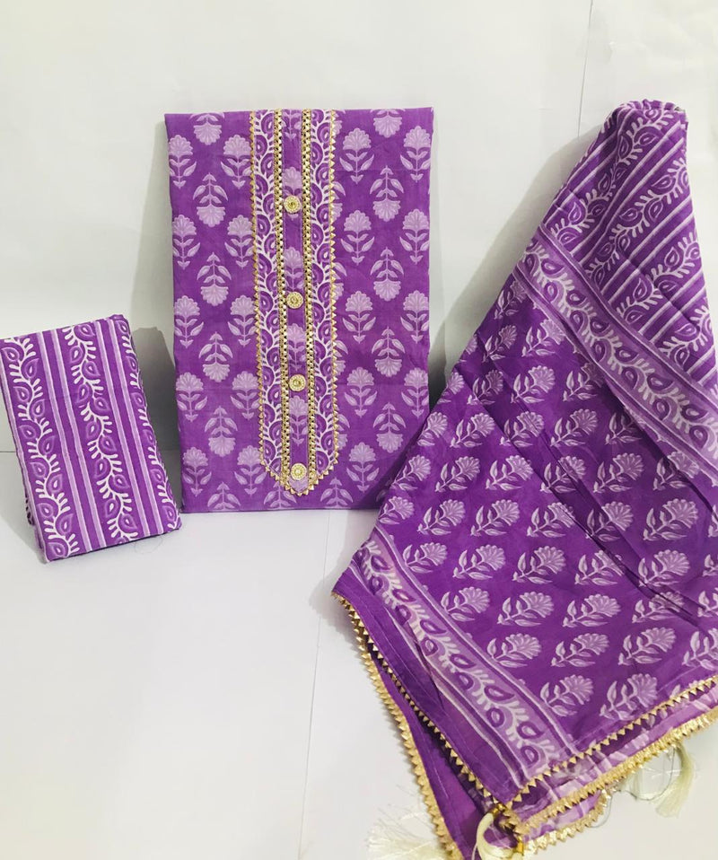 SANGANERI PRINT COTTON SUIT MATERIAL WITH COTTON DUPATTA WITH GOTA HAND WORK (GOTAYS100)