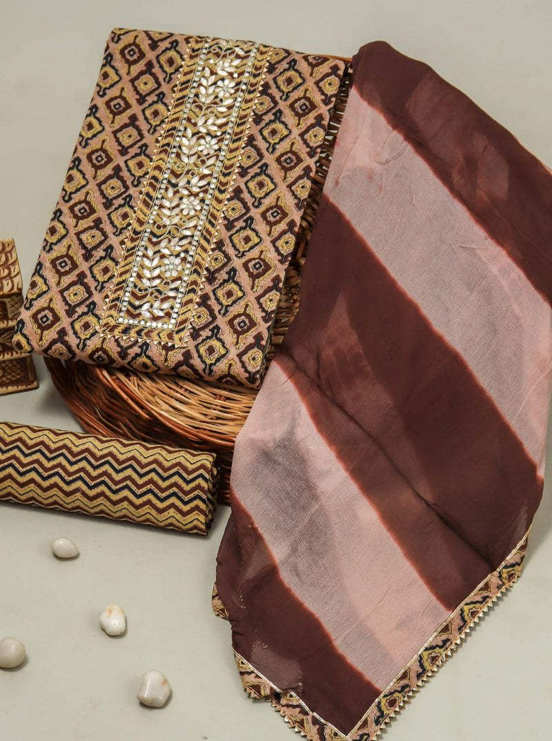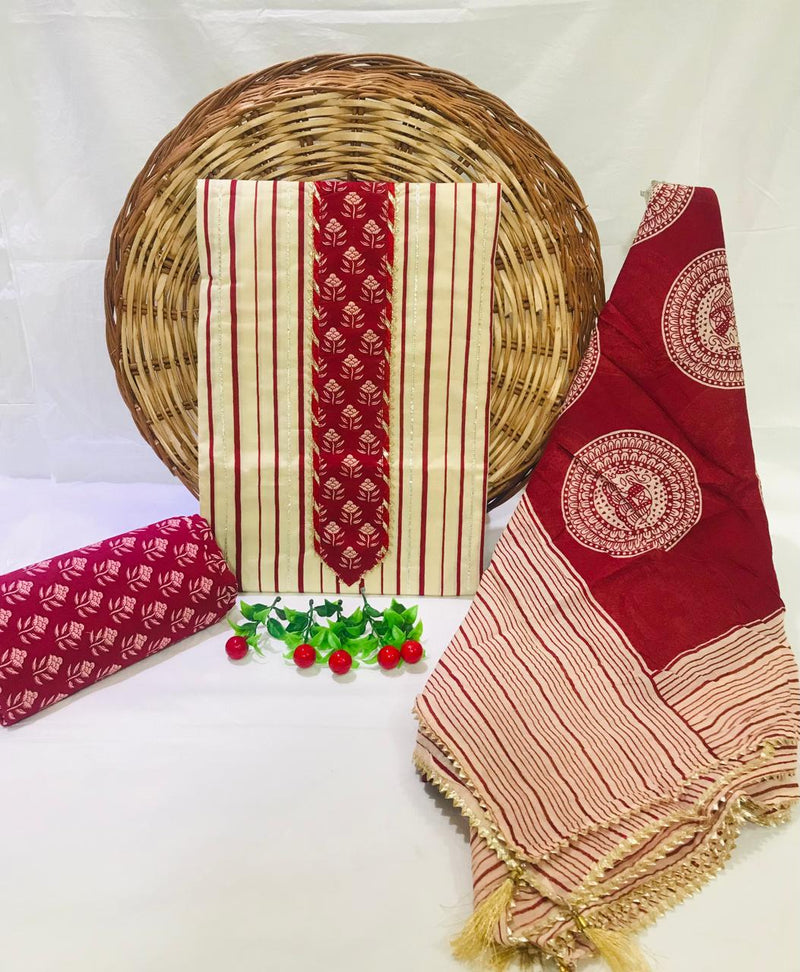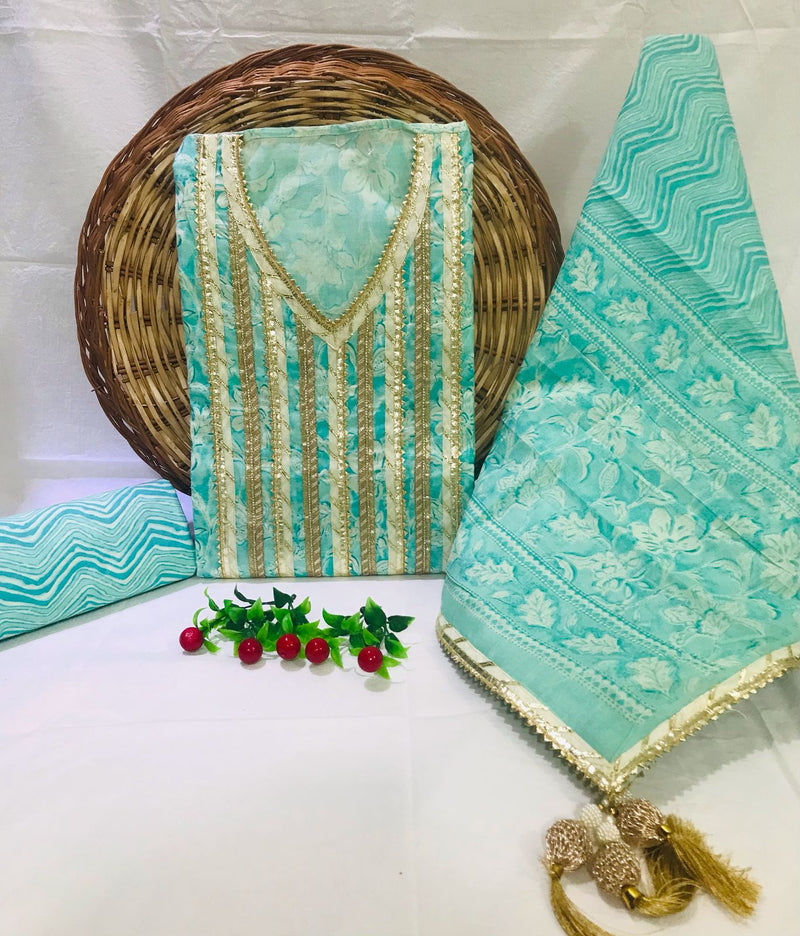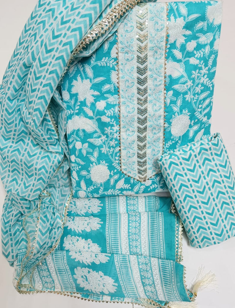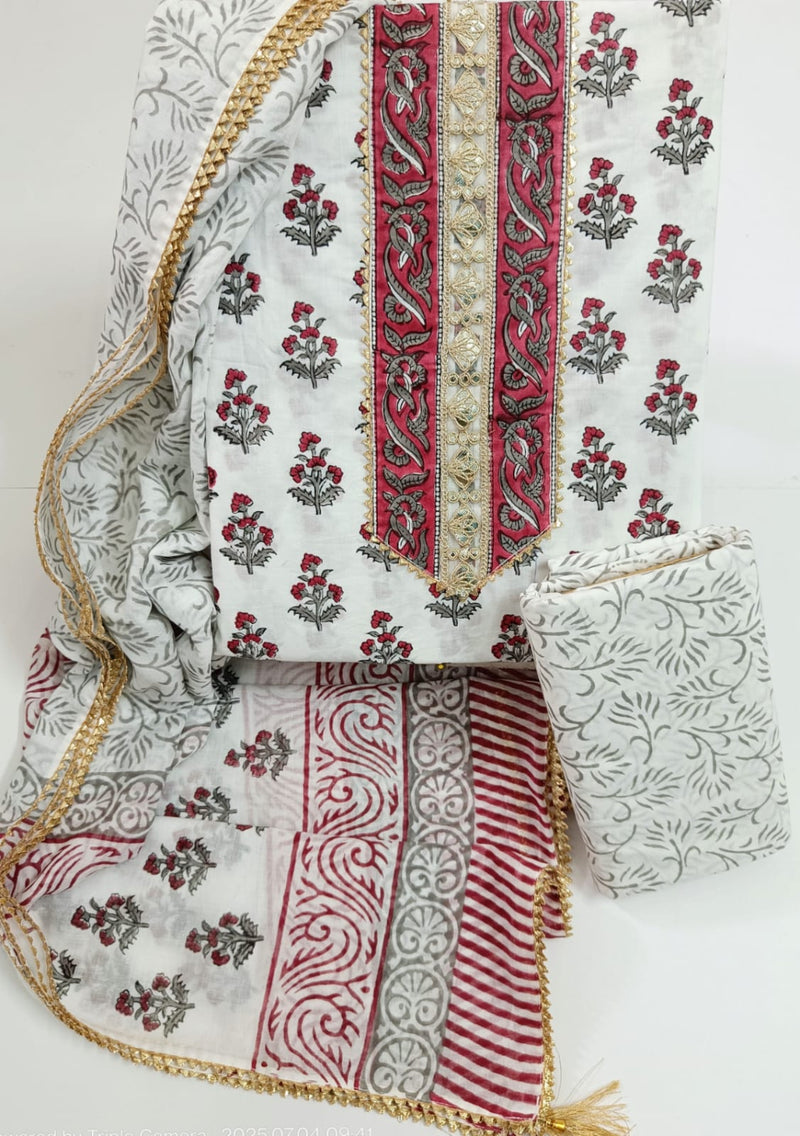 Sanganeri print cotton suit material with Chiffion dupatta Gotta Hand work (GOTAYS67)