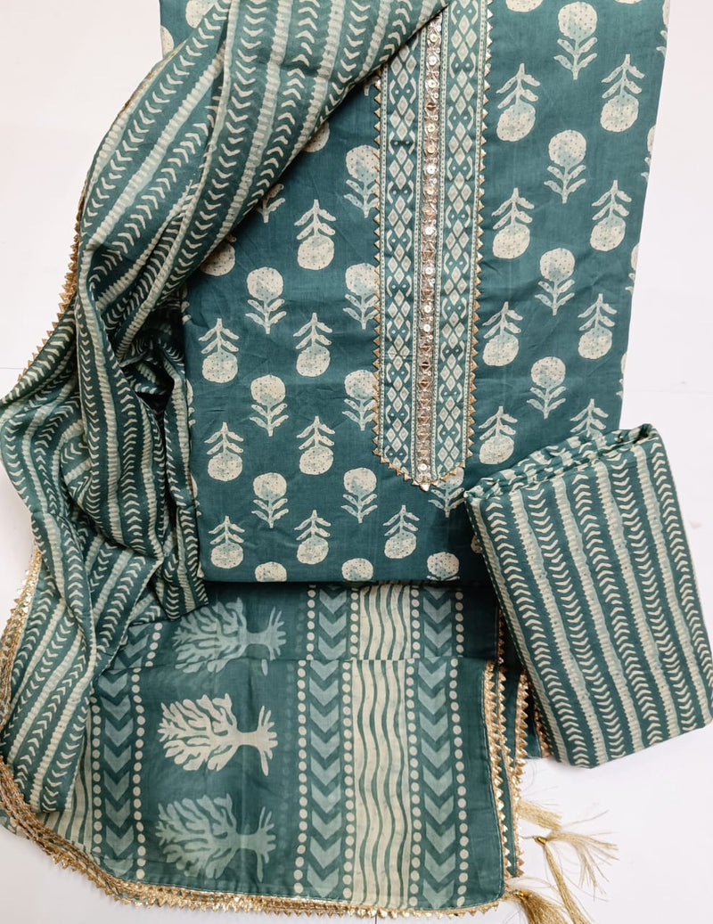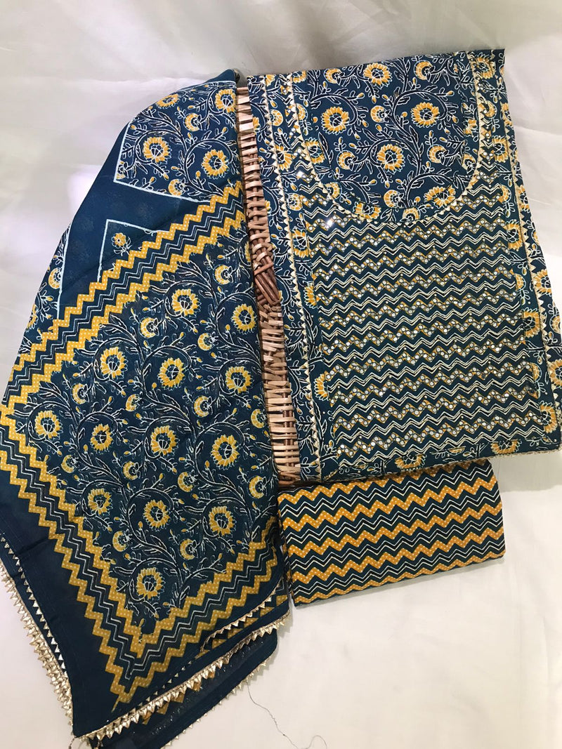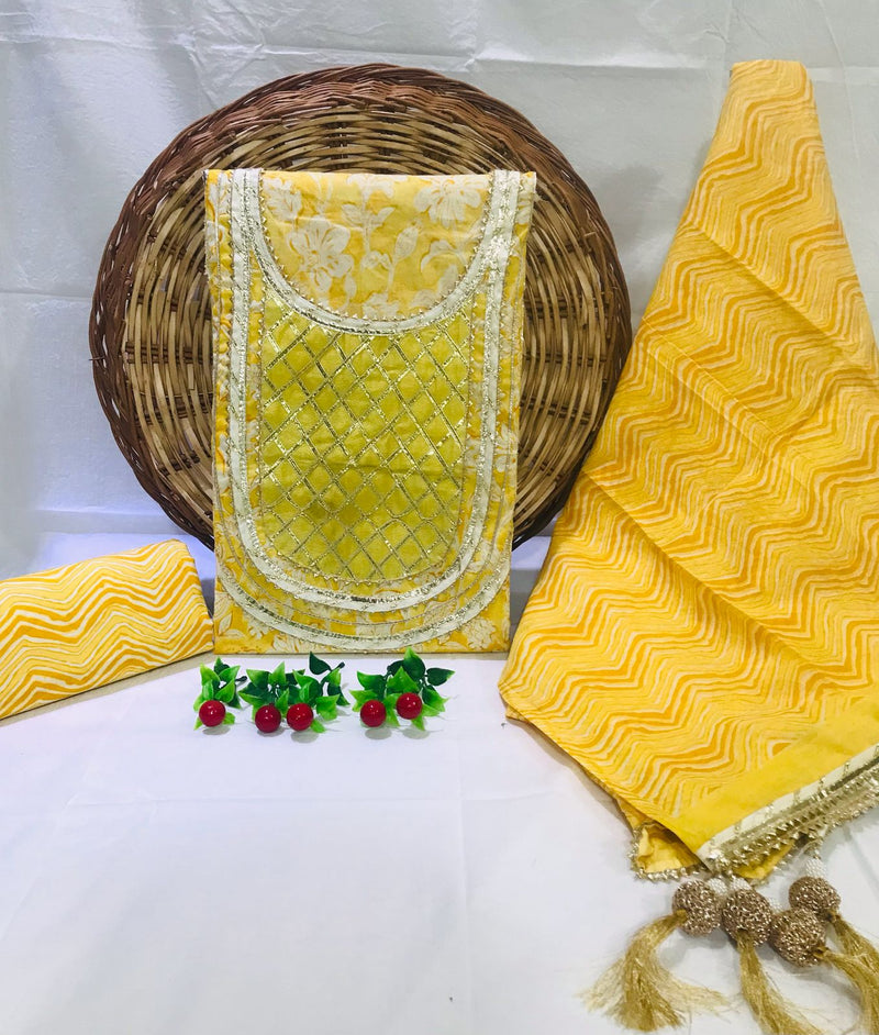 Sanganeri print cotton suit material with cotton dupatta Gotta Tye neck work (GOTAYS34)