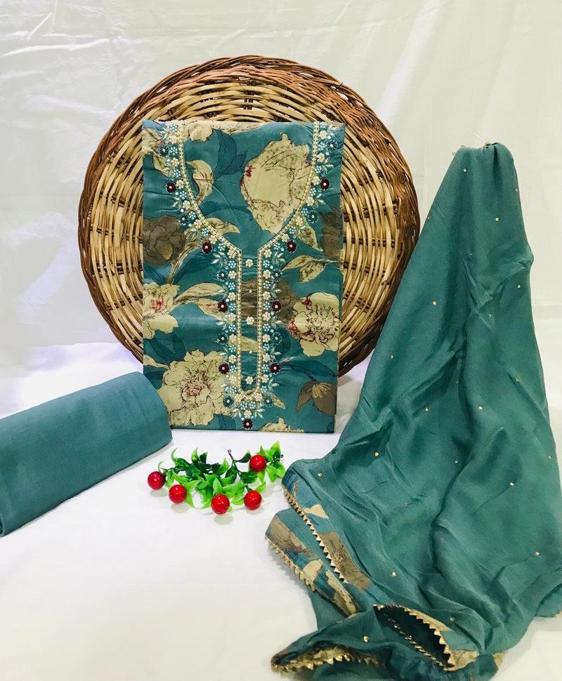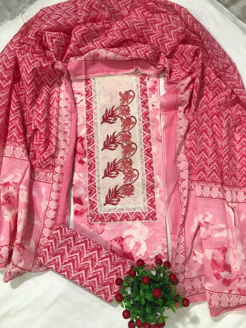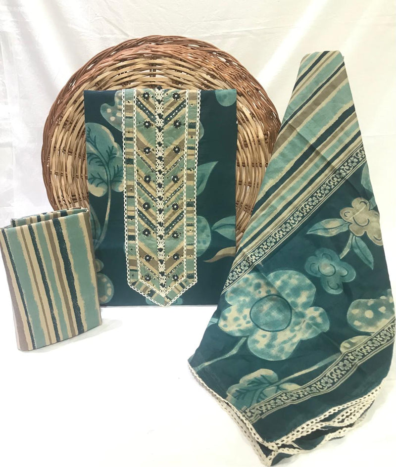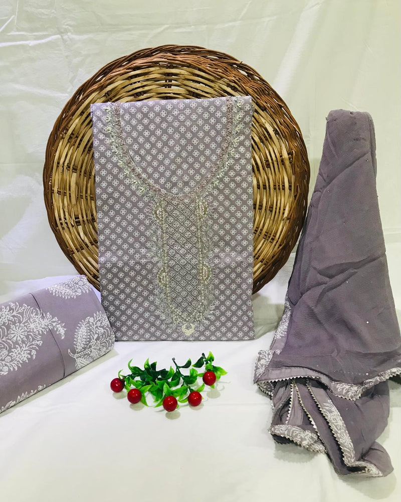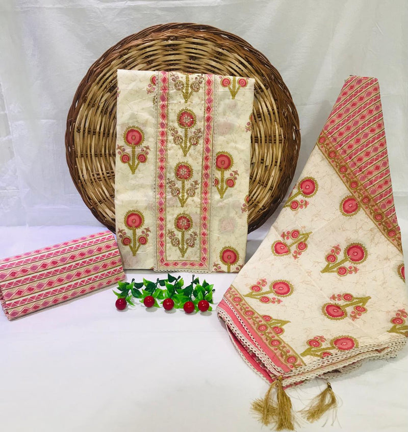 SANGANERI PRINT COTTON SUIT MATERIAL WITH CHIFFION DUPATTA NECK WORK (GOTAYS144)