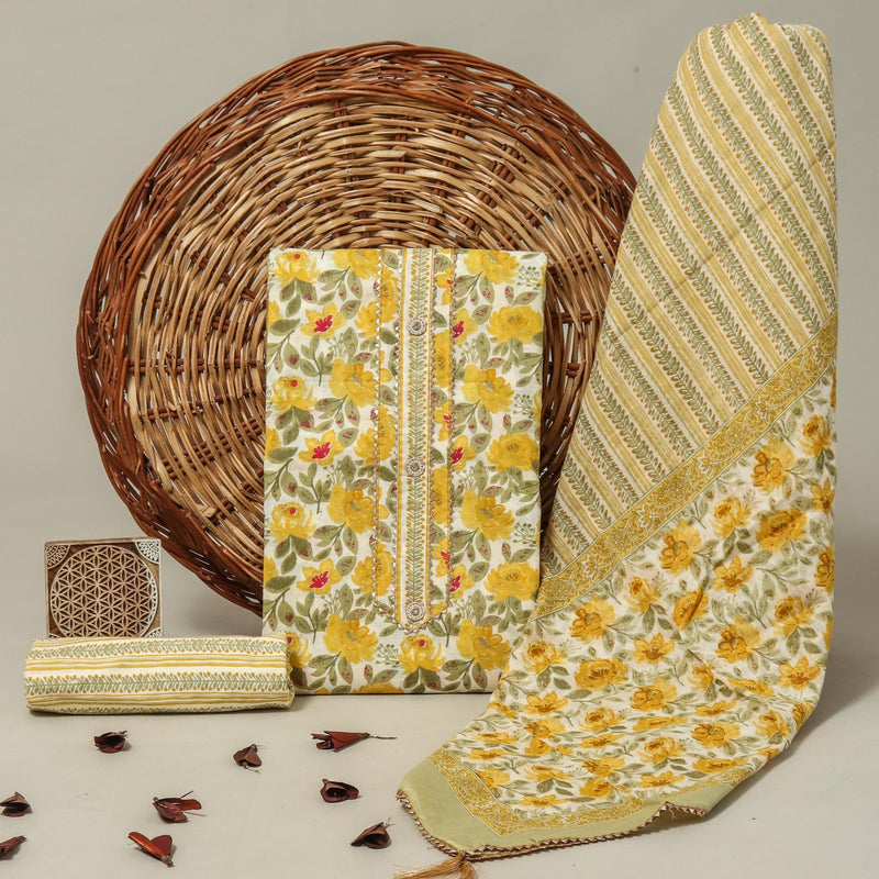 SANGANERI PRINT COTTON SUIT MATERIAL WITH COTTON DUPATTA NECK WORK (GOTAYS04)