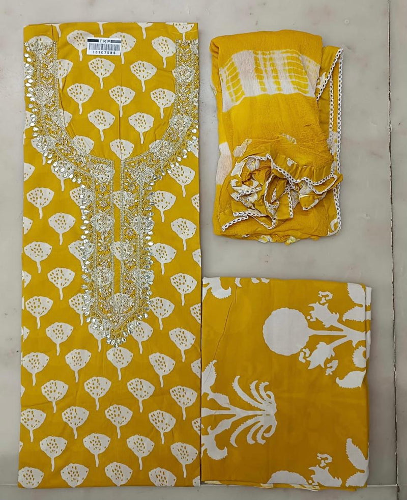 Sanganeri print cotton suit material with cotton dupatta Gotta Tye neck work GOTAYS19)