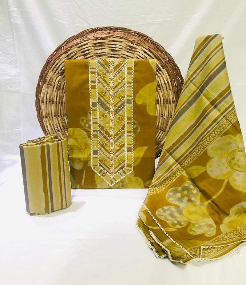 SANGANERI PRINT COTTON SUIT MATERIAL WITH COTTON DUPATTA NECK WORK (GOTAYS117)