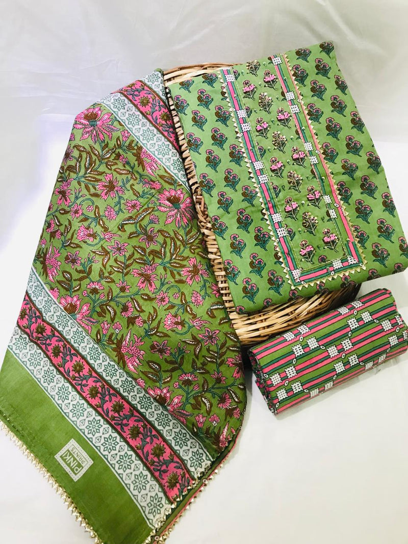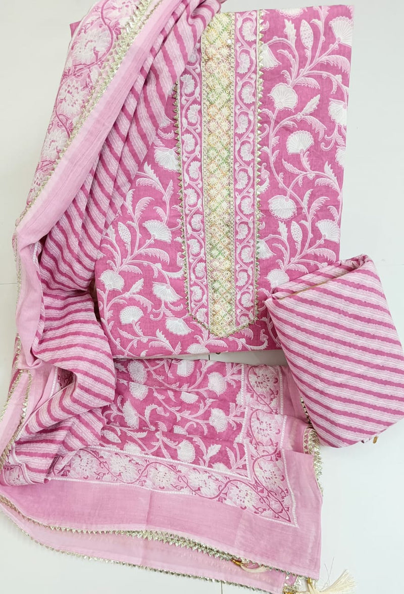 Sanganeri print cotton suit material with cotton dupatta Gota work (GOTAYS94)