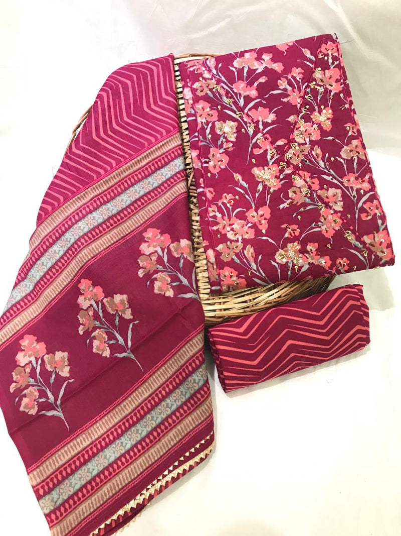SANGANERI PRINT COTTON SUIT MATERIAL WITH CHIFFION DUPATTA WITH GOTA HAND WORK (GOTAYS83)