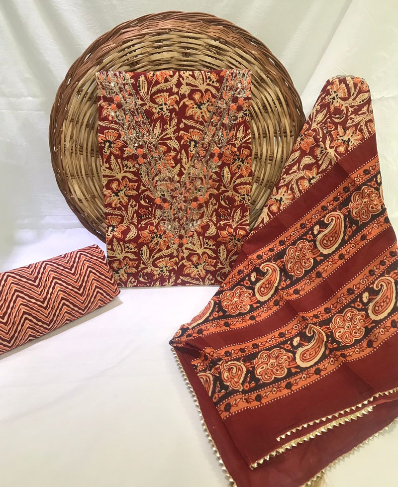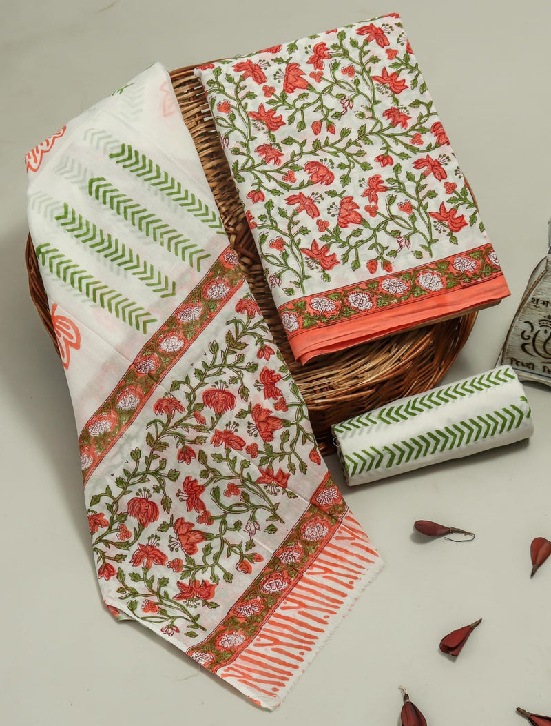 Save 47%SANGANERI PRINT COTTON SUIT MATERIAL WITH  MULMUL DUPATTA HAND WORK (GOTAYS110)