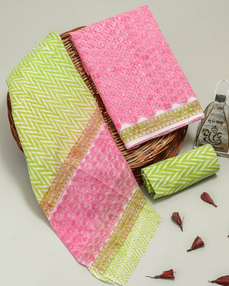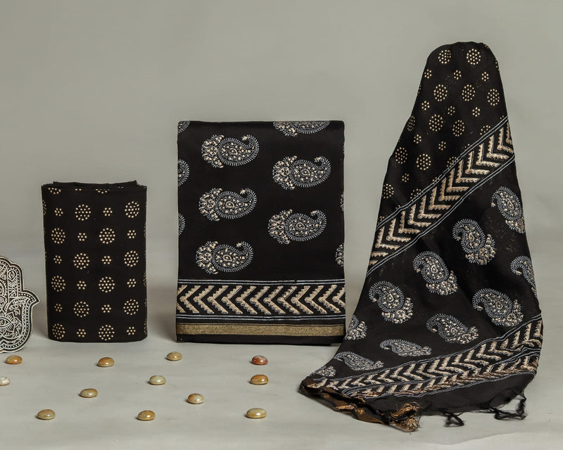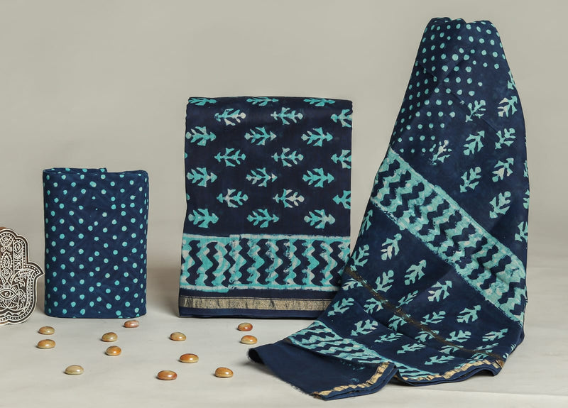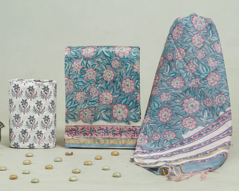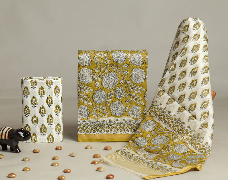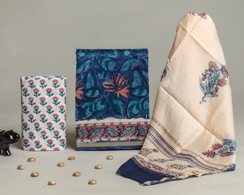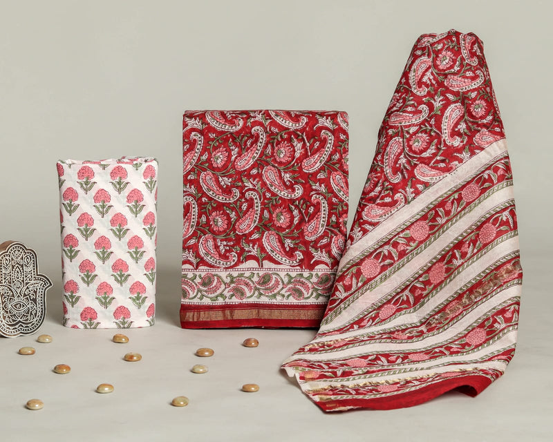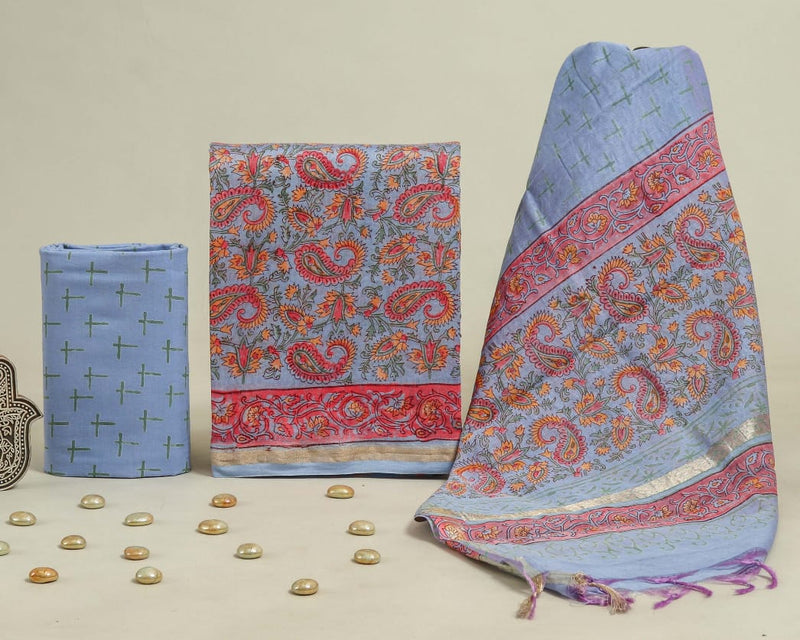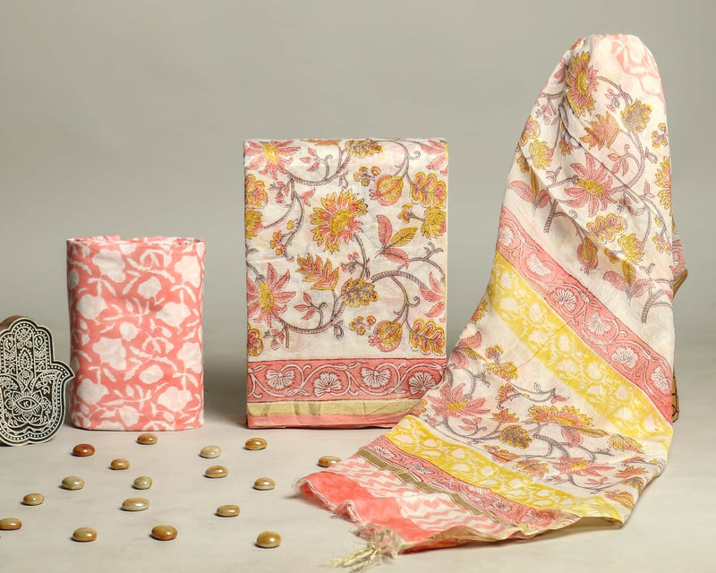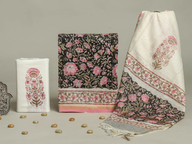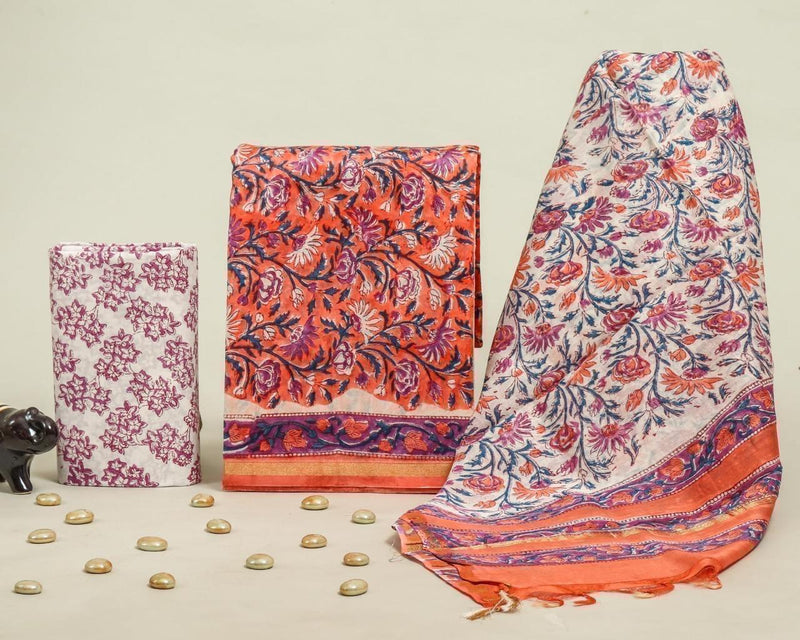 TRADITIONAL HAND BLOCK PRINT COTTON SUIT WITH MULMUL DUPPTA (MALYS242)