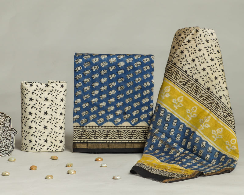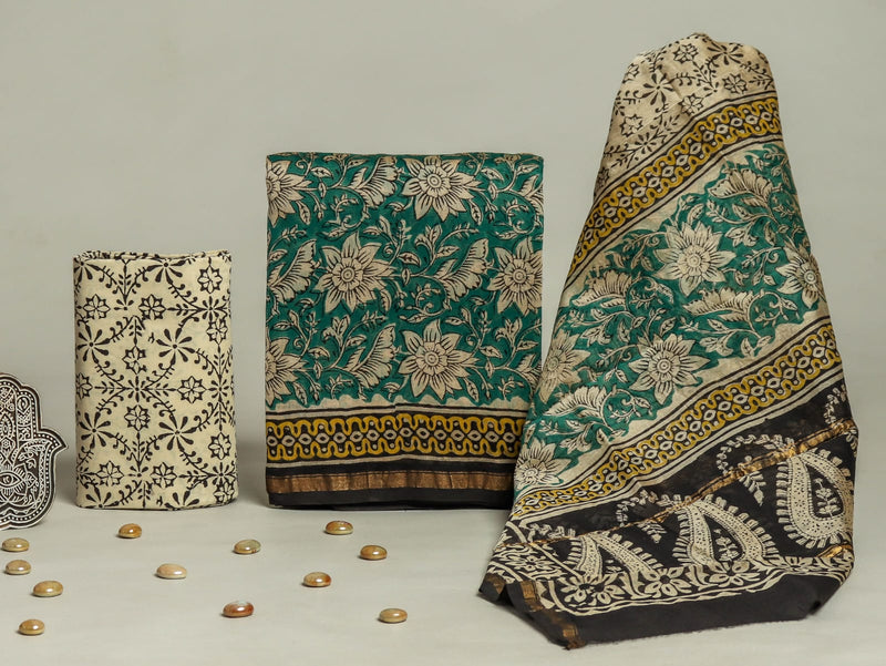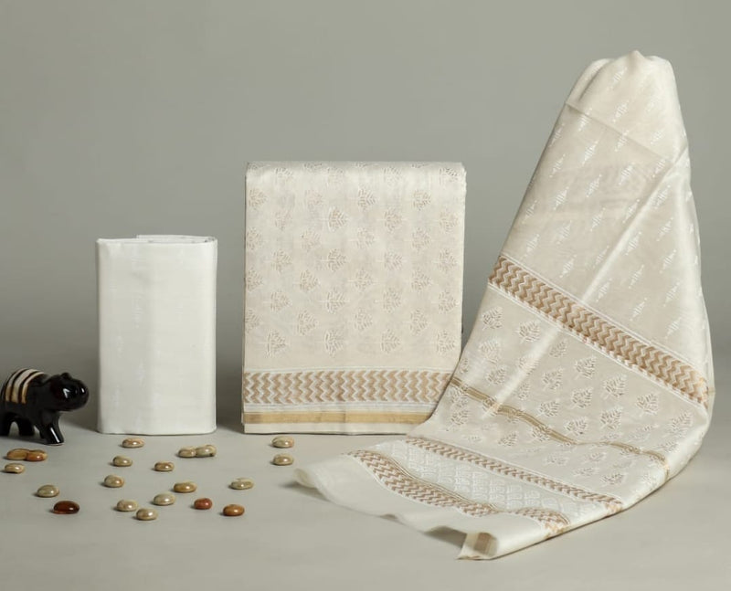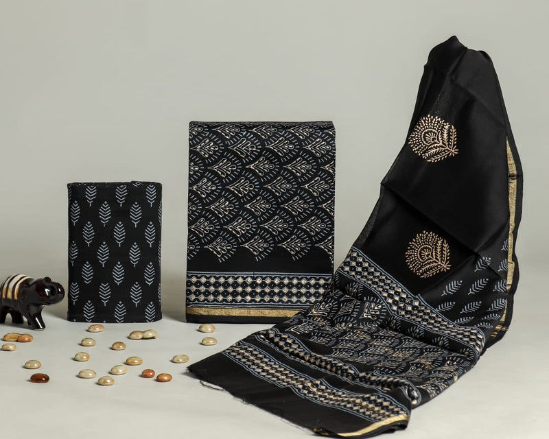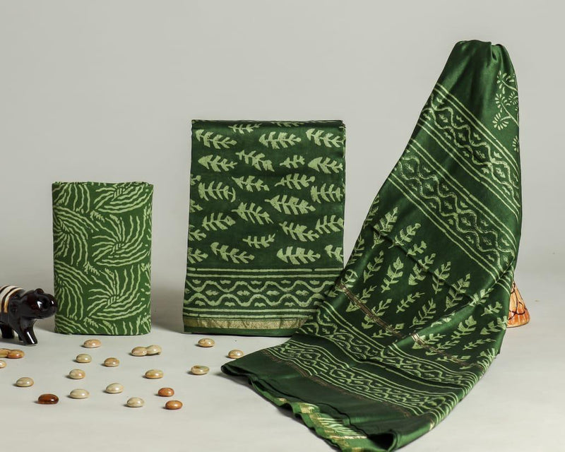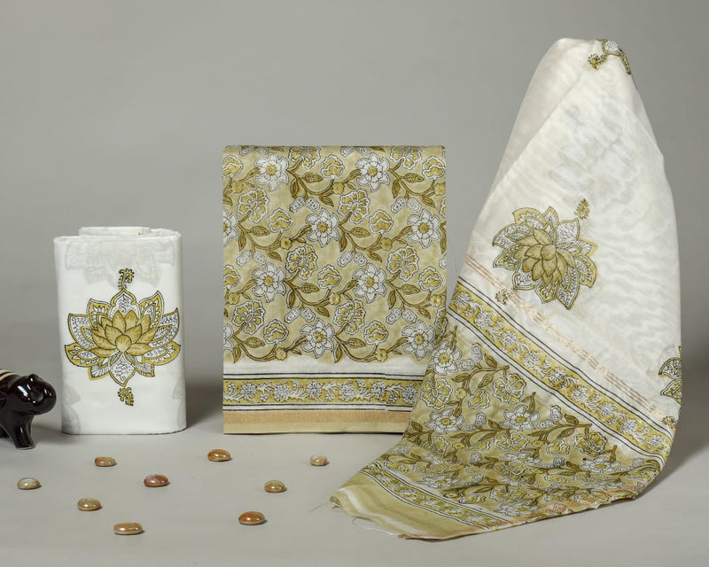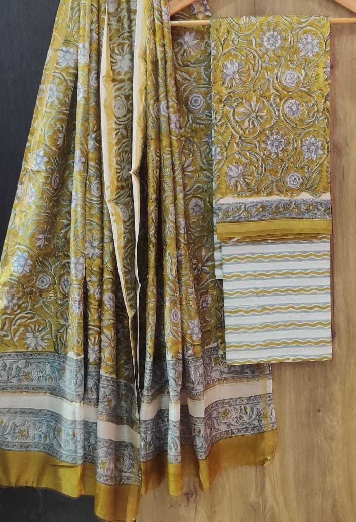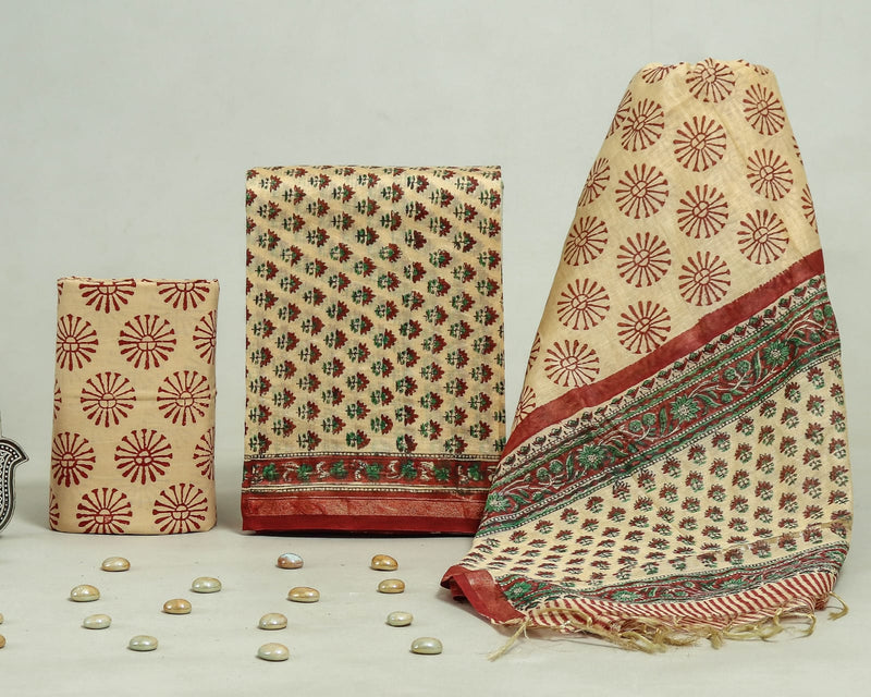 TRADITIONAL HAND BLOCK CHANDERI SILK SUIT SET WITH CHANDERI DUPATTA (CHDYS215)