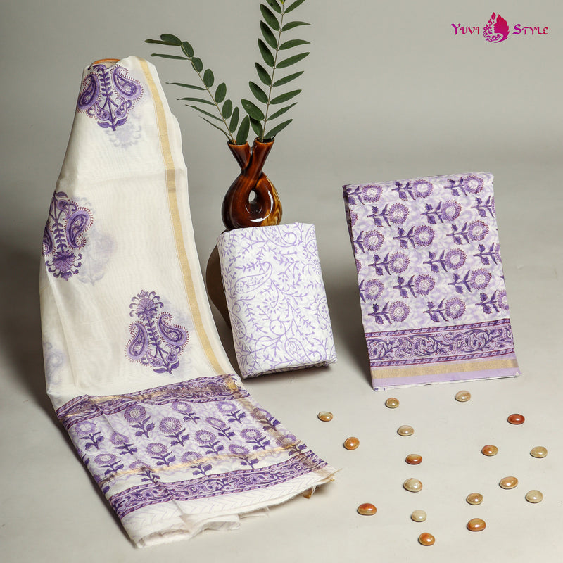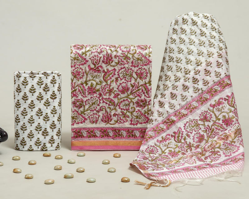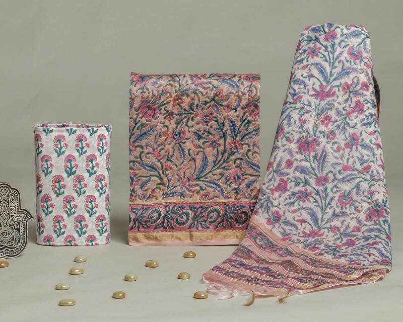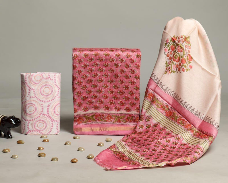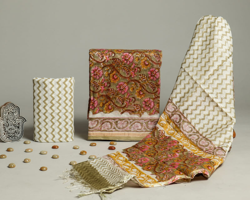 TRADITIONAL HAND BLOCK CHANDERI SILK SUIT SET WITH CHANDERI DUPATTA (CHDYS120)
