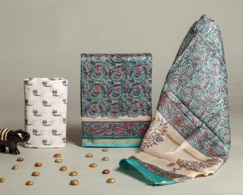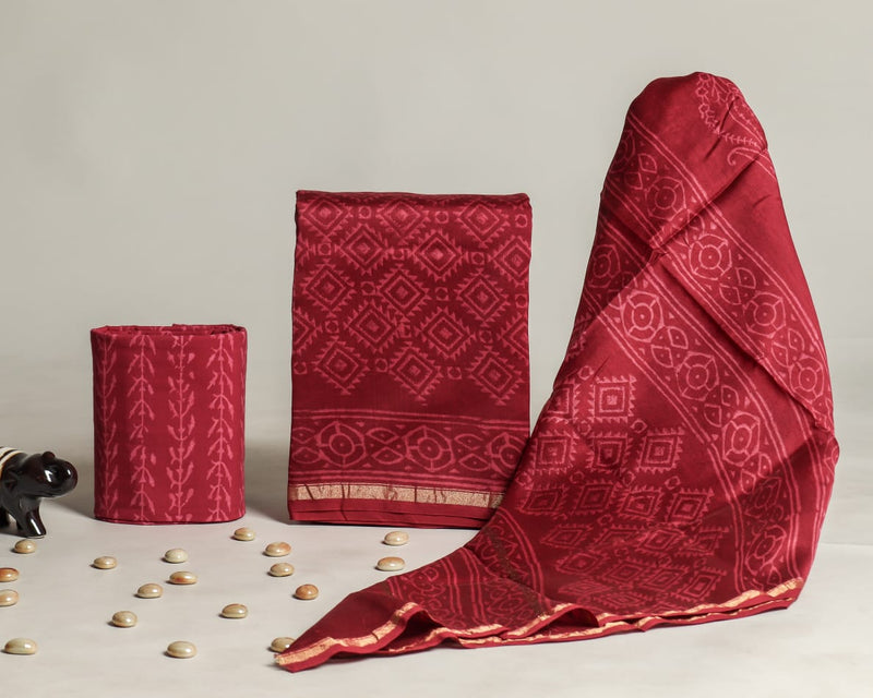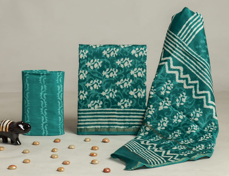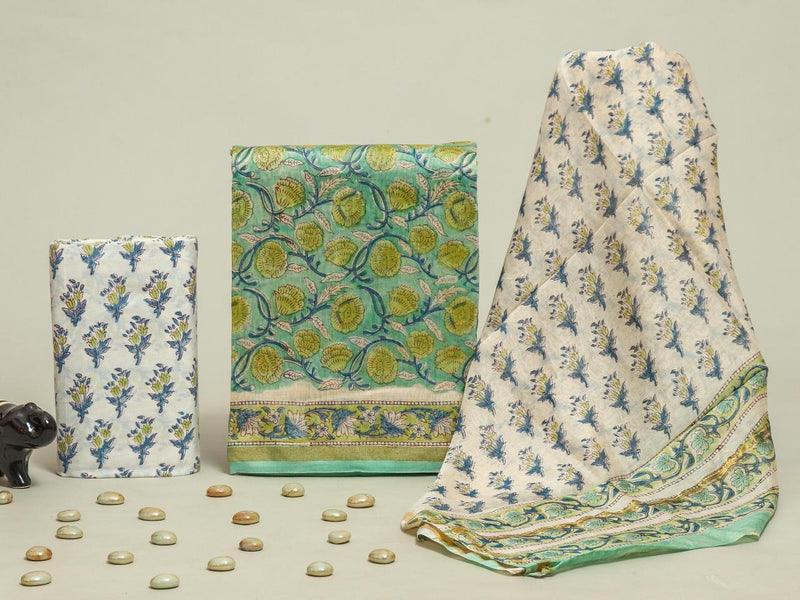 TRADITIONAL HAND BLOCK CHANDERI SILK SUIT SET WITH CHANDERI DUPATTA (CHDYS202)